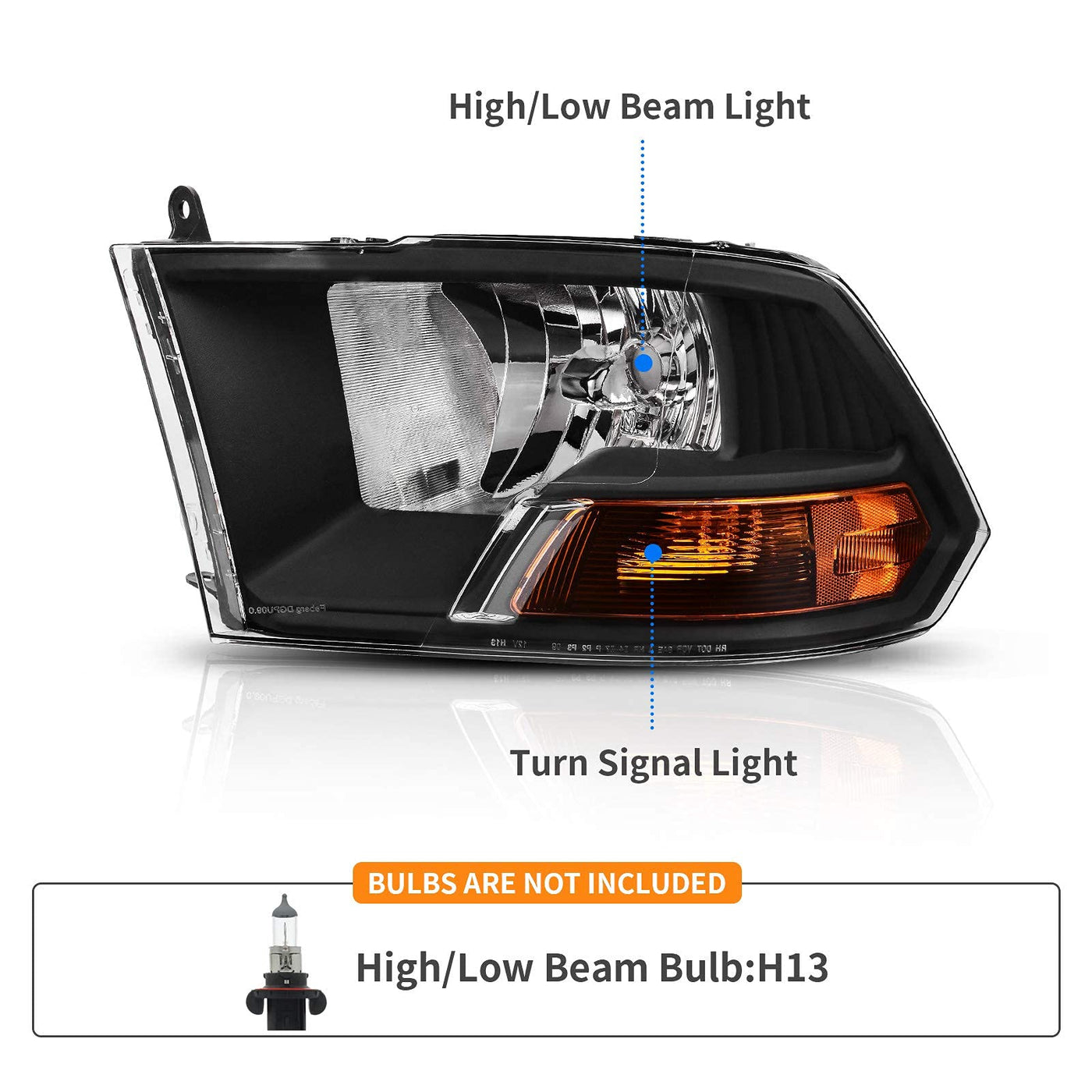 Compatibility: The Headlight Assemblies Are Compatible With 2009-2012 Dodge Ram 1500 / 2010-2012 Dodge Ram 2500 3500; High Beam/Low Beam Bulb Type: H13; Bulbs Are Not Included | Improved Illumination: The Integrated Metalized Reflectors Of This Headlight Assembly Increase Light Distance For Better Visibility & Driving Safety In Any Dusky Conditions | Weather-Sealed: The Fully Sealed Structure With Solid Silicon Prevents Moisture From Being Trapped Inside The Housing & Provides Reliable Service In Sorts Of Weather Conditions Such As Rain, Snow Or Dust Storms | Impact-Resistant & Tough: Constructed With Durable Polycarbonate Lenses That Give Great Protection Against The Abuse Of Road Debris & Impact From Branches On The Trail, And The High-Impact Housing Also Better Withstands Shock And Vibration For Your Off-Road Adventures | Direct Replacement: Professional Installation Would Be Highly Recommended; Come As A Pair, Including Driver (Left) & Passenger (Right) Side