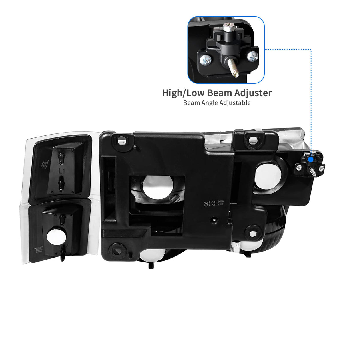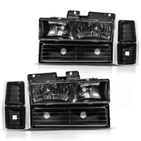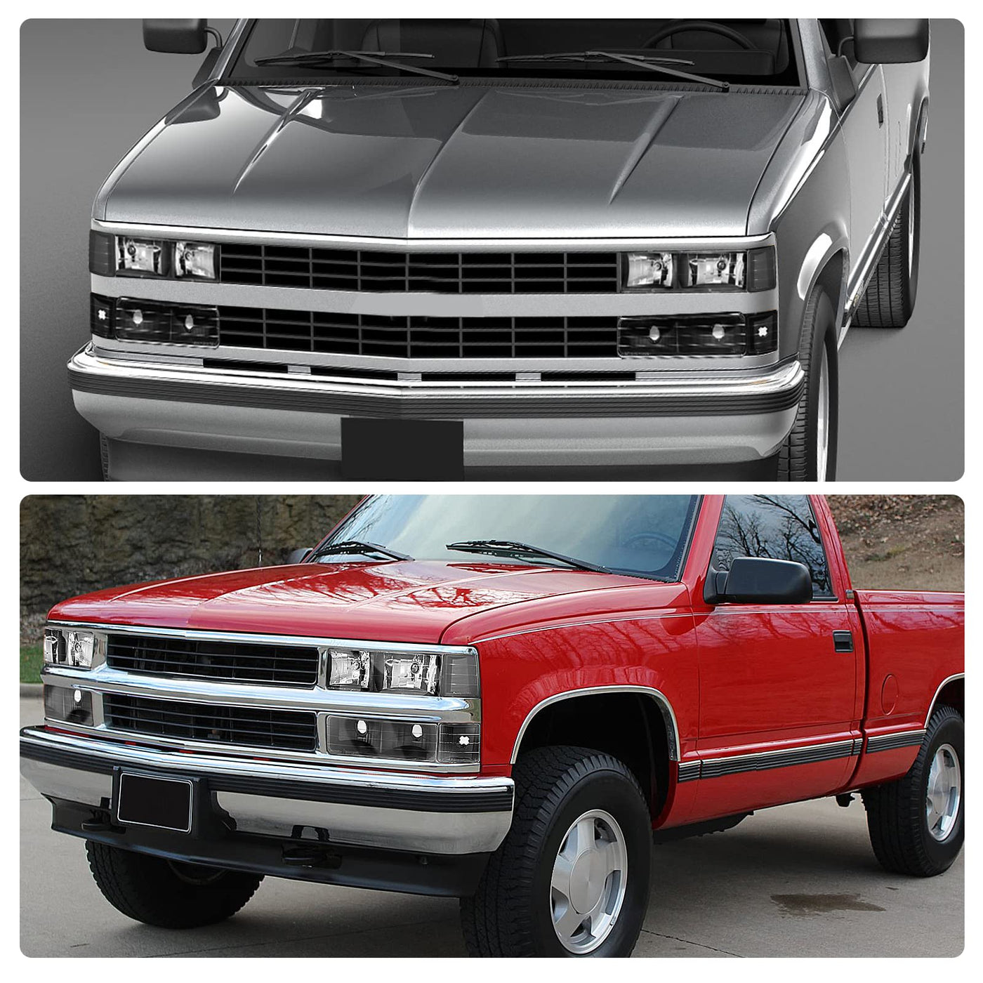 DWVO Headlight Assembly Compatible with 1994-1999 Chevy C/K Series 1500 2500 3500/Tahoe/Suburban/Silverado Crystal Headlamp w/Corner & Bumper Lights Black Housing