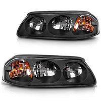 Dwvo Headlight Assembly Compatible With 2000-2005 Chevy Impala Black Housing Amber Reflector