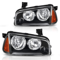 Dwvo Headlight Assembly Compatible With 2006-2010 Dodge Charger Black Housing Amber Reflector (Driver & Passenger Side)