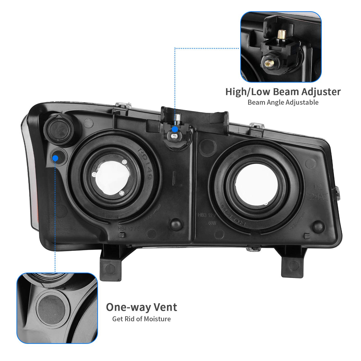 Compatibility: the headlight assemblies are compatible with 2003-2006 Chevy Silverado 1500/1500 HD / 2500 HD / 3500; 2003-2004 Chevy Silverado 2500; 2007 Chevy Silverado 1500/1500 HD/2500 HD/3500 Classic; 2003-2006 Chevy Avalanche 1500/2500 Pickup (Without Body Cladding); high beam bulb type: HB3/9005; low beam bulb type:HB4/9006; bulbs are not included | Improved illumination: the integrated metalized reflectors of this headlight assembly increase light distance for better visibility & driving safety in any dusky conditions | Weather-sealed: the fully sealed structure with solid silicon prevents moisture from being trapped inside the housing & provides reliable service in sorts of weather conditions such as rain, snow or dust storms | Impact-resistant & tough: constructed with durable polycarbonate lenses that give great protection against the abuse of road debris & impact from branches on the trail, and the high-impact housing also better withstands shock and vibration for your off-road adventures | Direct replacement: professional Installation would be highly recommended; come as a pair, including Driver (Left) & Passenger (Right) side