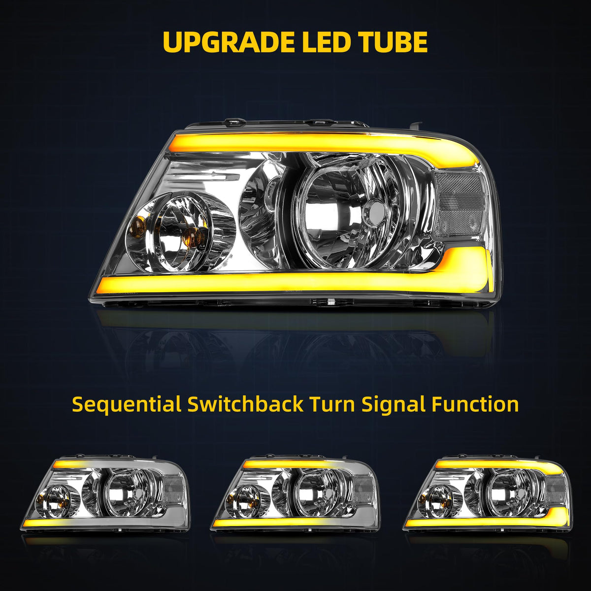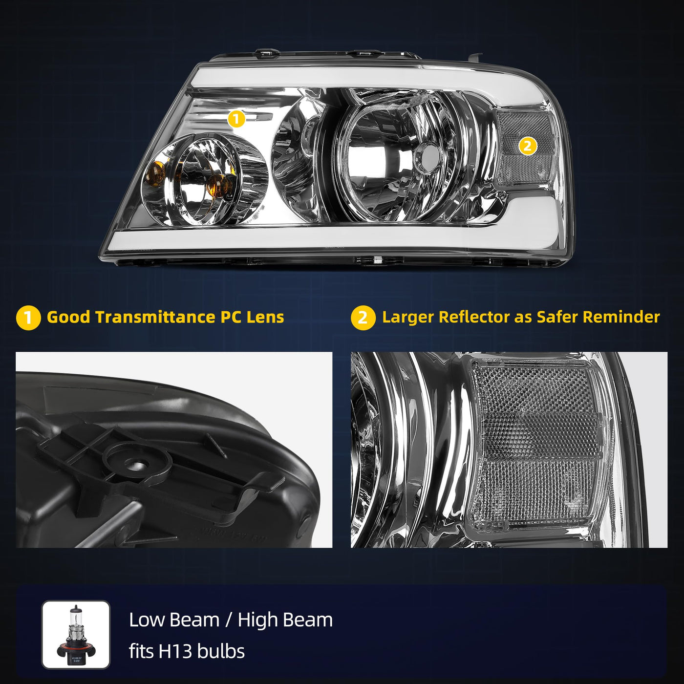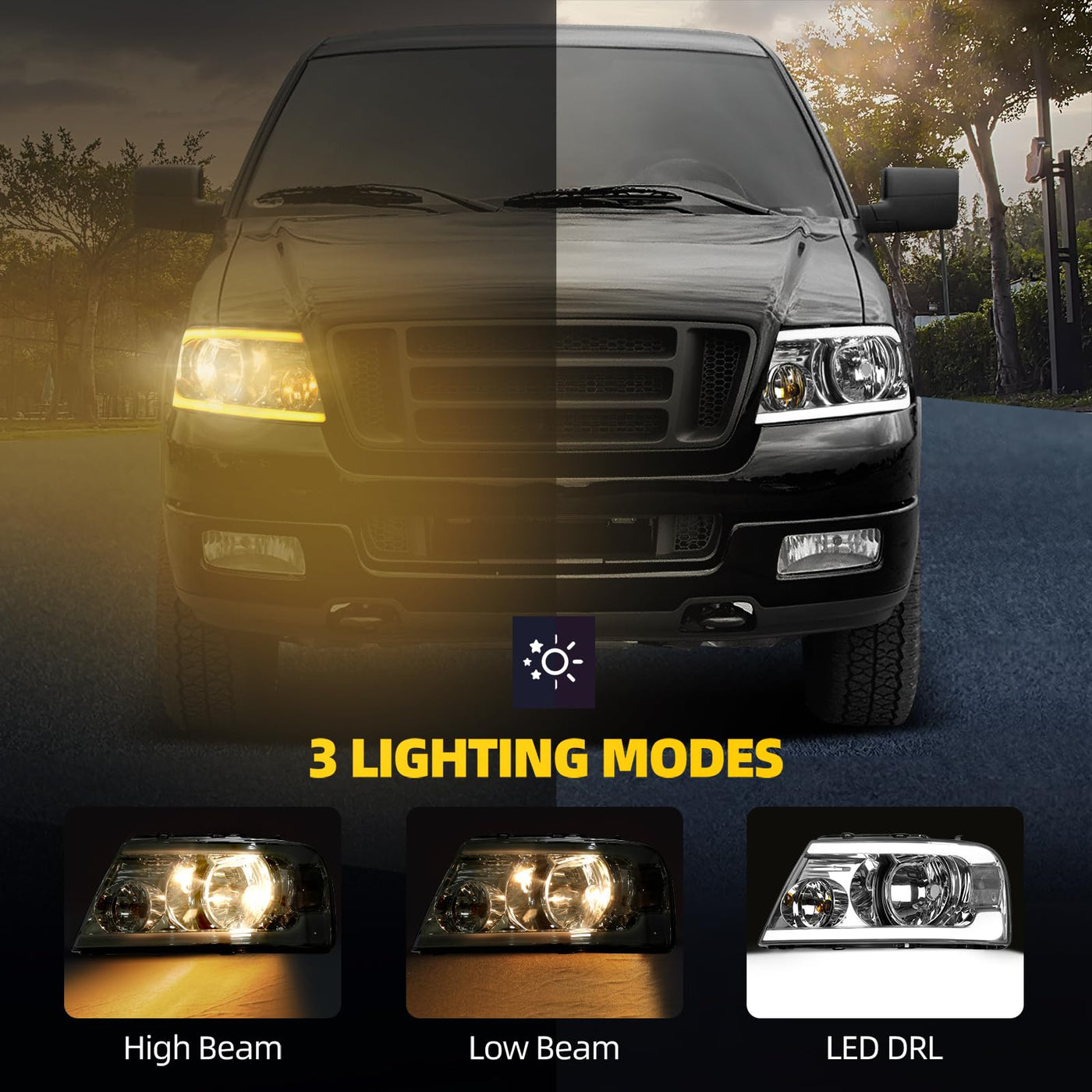 Compatibility: Compatible With 2004 2005 2006 2007 2008 Ford F-150 06 07 08 Lincoln Mark Lt Headlight;Not Compatible With 2004 F150 Heritage;Not Compatible With Flareside Beds Models; High/Low Beam:H13; Halogen Bulbs Are Not Included | Dual-Funtion Switchback Led: Can Be Used As Both Led Daytime Running Lamps That Raise The Visibility For Better Driving Safety, And Sequential Signal Lights To Give You An Enhanced Style When You Change Lane Or Make A Turn And Keep Others Informed | Weather-Sealed: The Fully Sealed Structure With Solid Silicon Prevents Moisture From Being Trapped Inside The Housing & Provides Reliable Service In Sorts Of Weather Conditions Such As Rain, Snow Or Dust Storms | Impact-Resistant & Tough: Constructed With Durable Polycarbonate Lenses That Give Great Protection Against The Abuse Of Road Debris & Impact From Branches On The Trail, And The High-Impact Housing Also Better Withstands Shock And Vibration For Your Off-Road Adventures | Direct Replacement: Professional Installation Would Be Highly Recommended; Come As A Pair, Including Driver (Left) & Passenger (Right) Side