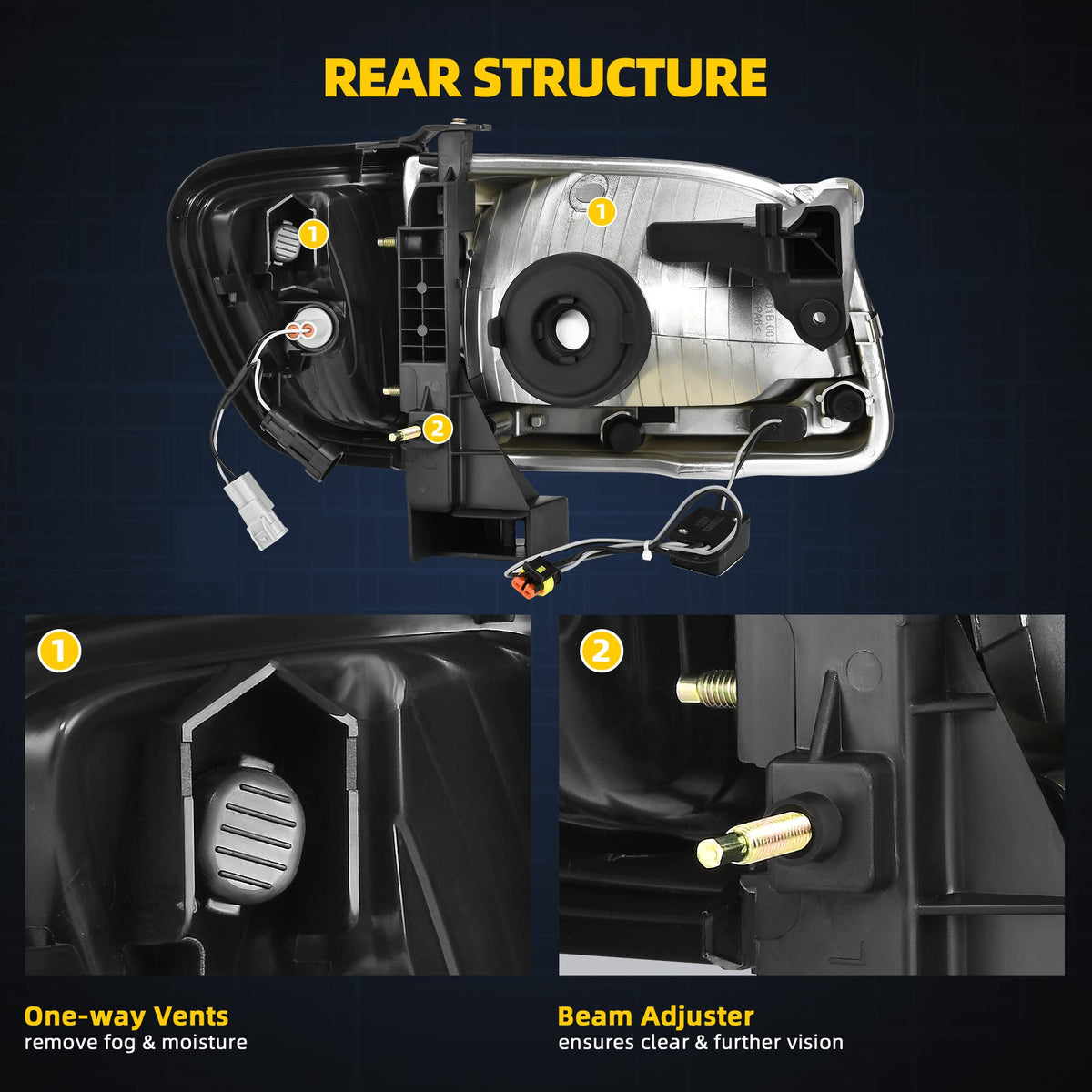 Compatibility: the headlight assemblies are compatible with 01 02 03 04 2001 2002 2003 2004 Tacoma; high/low beam bulb type: H4; bulbs are not included | Cutting-edge light design: sleek bright LED daytime running lamps raise the visibility to make your car more conspicuous for added safe & complete the look of your vehicle | Weather-sealed: the fully sealed structure with solid silicon prevents moisture from being trapped inside the housing & provides reliable service in sorts of weather conditions such as rain, snow or dust storms | Impact-resistant & tough: constructed with durable polycarbonate lenses that give great protection against the abuse of road debris & impact from branches on the trail, and the high-impact housing also better withstands shock and vibration for your off-road adventures | Direct replacement: professional Installation would be highly recommended; come as a pair, including Driver (Left) & Passenger (Right) side