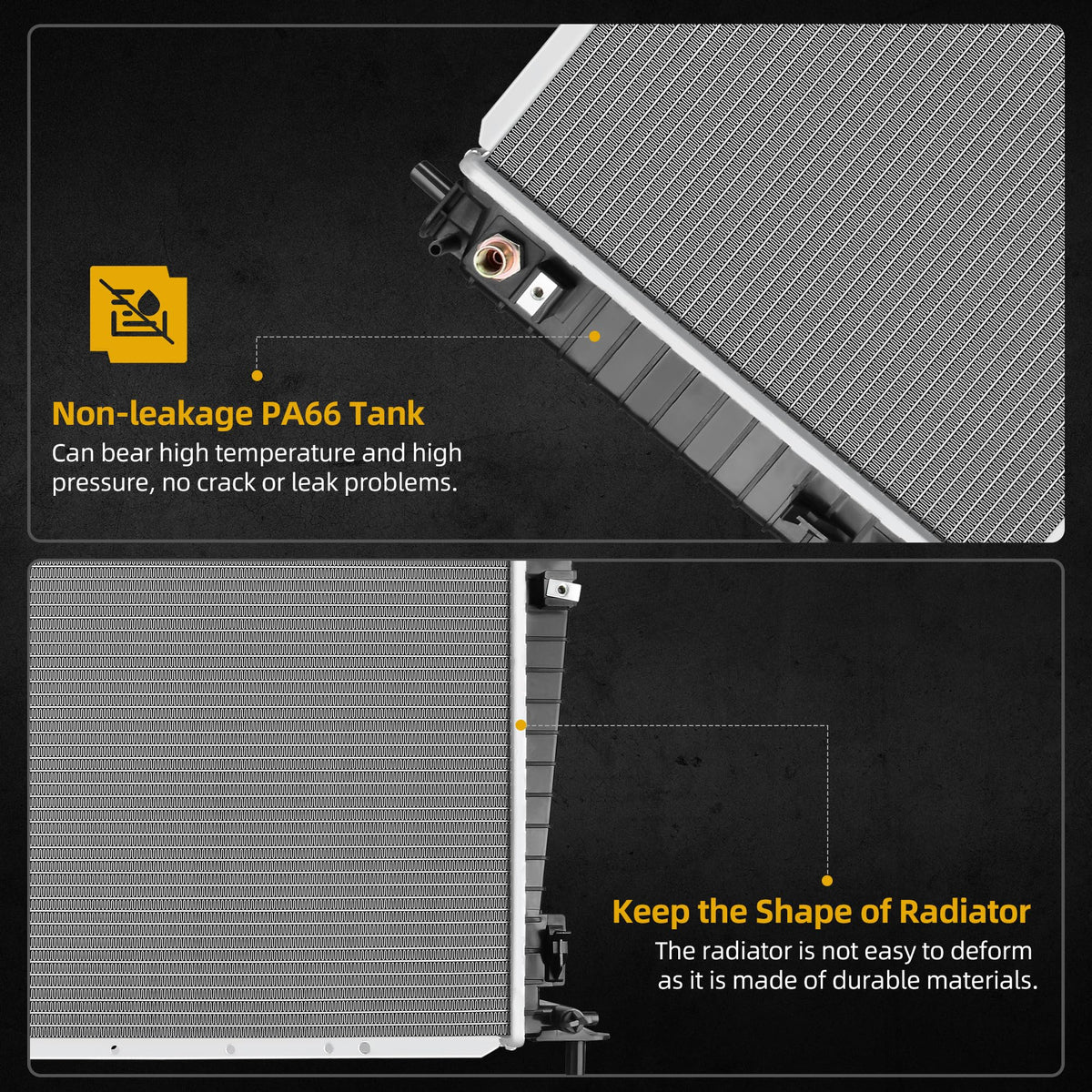 DIRECT OEM FIT - Radiator Compatible with 1997-2002 Ford Expedition, 1997-2003 F-150, 1997-2003 F250, 1999-2009 F-350, 1998-2002 Lincoln Navigator, 2003 Blackwood 4.6L 5.4L V8. Please confirm the fitment before ordering. | THE RIGHT CHOICE - OEM part number: F75H8005MA, F75Z8005JA, XL3Z8005BA, FO3010141, FO3010144. This OEM replacement part with 12 months, 12,000 miles warranty. | AFFORDABLE, RELIABLE & BUILT to LAST - This complete radiator is built with high density multi-louvered fins for maximum cooling efficiency, to ensure durability in extreme cold weather, 100% no leaks. | PREMIUM QUALITY for INSTALLATION - The aluminum radiator core built with TIG-welded end PA66 GF30 inlet/outlet tanks, brass transmission oil cooler and treated coating is applied to ensure product longevity. | ENHANCED PACKAGE - Package come with 1x DWVO Complete Radiator and 1x User Manual, WITHOUT RADIATOR CAP. Fixed foam in four corners for the purpose of fixing the radiator, no bending and no damage. Professional installation would be highly recommended.