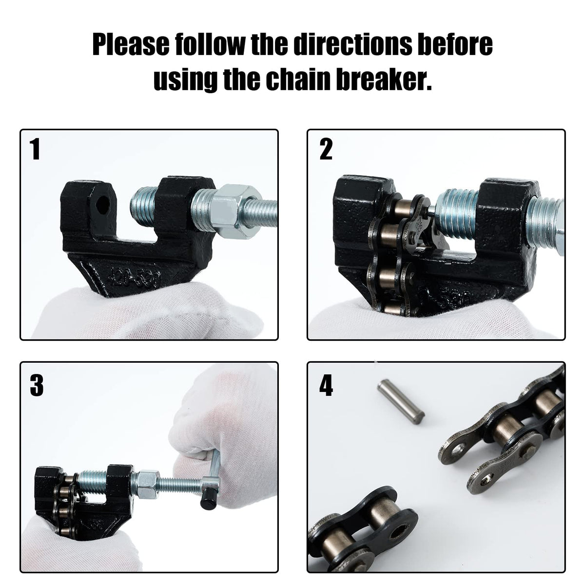 Q: How does the chain breaker tool included with the DYC 428H chain help with installation?A: The included chain breaker tool simplifies the installation process by allowing users to easily break and reconnect the chain, making it a hassle-free solution for both experienced mechanics and beginners.