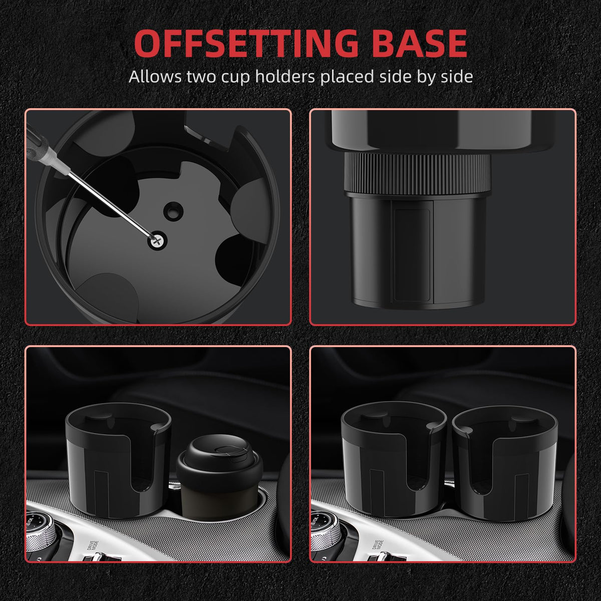 This car cup holder expander is large enough to hold most oversized bottles, works great with bottles in 3.0''-4.1''. Meanwhile it has expandable base to fit in different cars with round car cup holder.