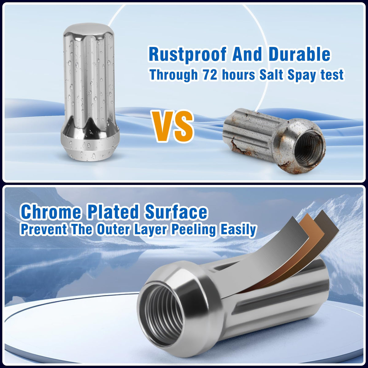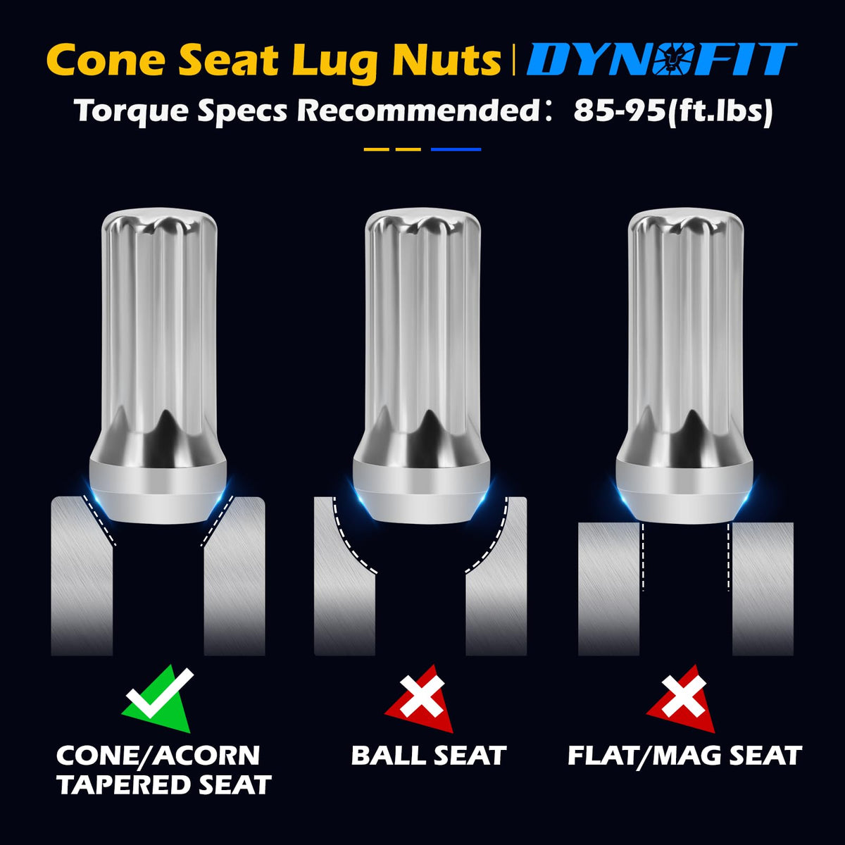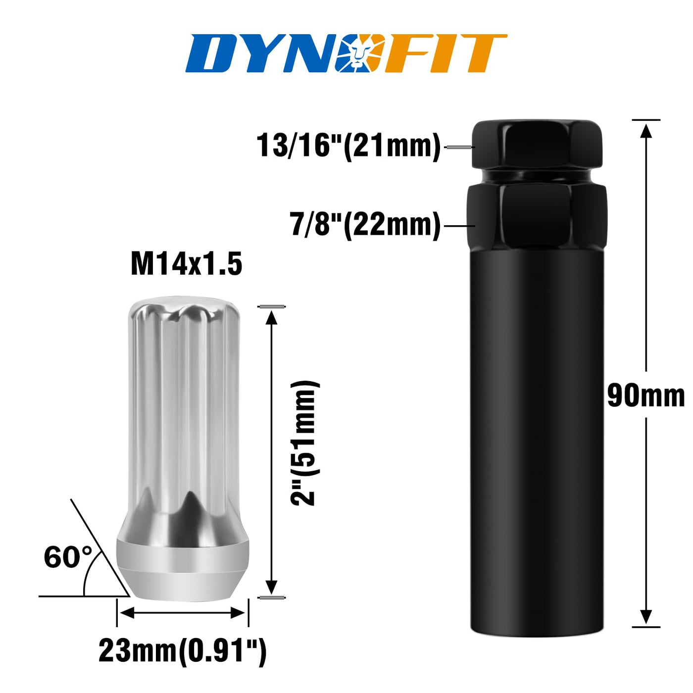 Dynofit 14Mmx1.5 Wheel Lug Nuts, 32X Chrome M14X1.5 Lug Nut,Conical/Cone Bulge Seat, Closed End Long Extended Xl Spline With 1 S