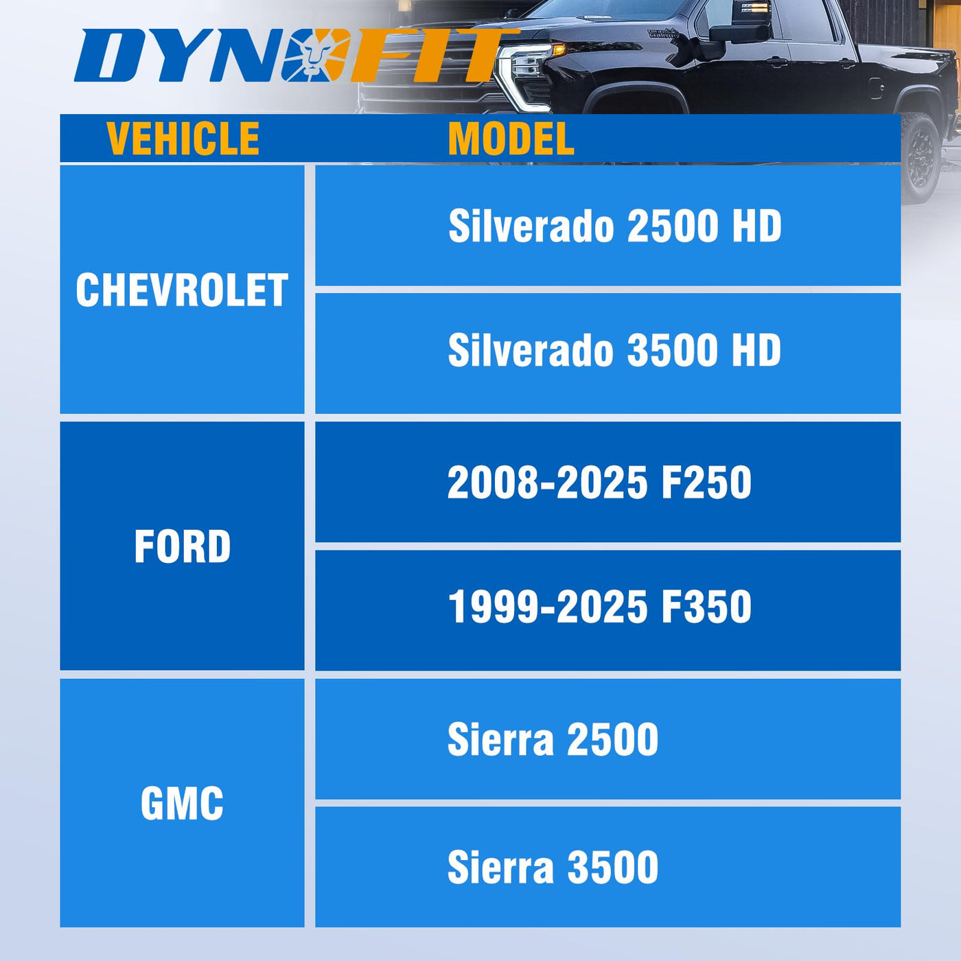 Q: What vehicles are compatible with the DYNOFIT 14mmx1.5 Wheel Lug Nuts?A: The DYNOFIT 14mmx1.5 Wheel Lug Nuts are designed to fit a variety of vehicles, including Chevy Silverado 2500 HD, Silverado 3500 HD, Ford F250/F-250, F350/F-350, GMC Sierra 2500, Sierra 3500, Dodge Ram 2500, and Ram 3500. If you're unsure about compatibility with your specific model, please contact us for assistance.