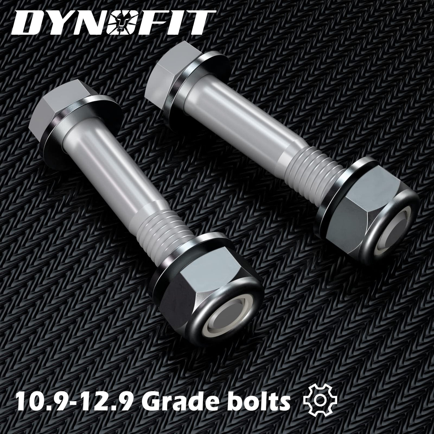 Q: What material are the Dynofit Rear Shock Extensions made from?A: The Dynofit Rear Shock Extensions are constructed from high-quality carbon steel and feature a black powder-coated finish, which enhances rust and corrosion resistance, ensuring durability and longevity.