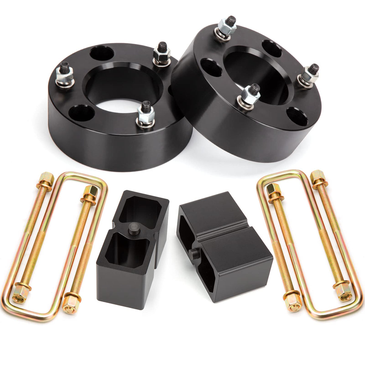 Dynofit Premium 3'' Leveling Lift Kits SeriesSize:Real thickness 2inch appr. But true 3'' front spacer leveling lift kits because of suspension geometryVehicles Detail:3 inch lift front spacers for Silverado 1500 2WD/4WD 2007-20203 inch lift kits for GMC Si-erra 1500 2WD/4WD 2007-2020Tips:Professional installation and alignment are recommendedMore choice about wheel lug nuts or spacers, please visit our store front pageAbout us:This Sil-verado 1500 Sierra 1500 suspension lift kits provides a front 3'' suspension liftIt improves the appearance of your vehicles and support the dependable riding balanceThe aircraft billet aluminum will not compress or bend even the Max load.Please remember to communicate with us when you meet any problems in your installation!SpecificationContent: 2xblack 3'' lift kits, 2 Blocks and 4 U-BoltsForged Billet Aluminum T6 treated10.9-12.9 Grade boltsBlack anodized surfaceNote: The front thickness is < 3'', but raise the front by true 3''U.S Based Brand