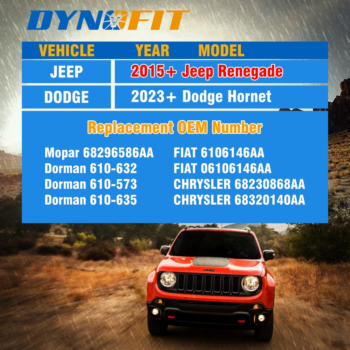 Dynofit 20PCS OEM/Stock Wheel Lug BoltsSpecification:Thread Pitch:M12x1.25Hex:17mmThread Length:22mmTall:2.12''Material:Alloy SteelBase Style:60 Degree Acorn Conical SeatFitment:2015+ Je/ep Renegade2023+ Do-dge HornetFeature: One-piece bolt, more durable, not like the original car will expand and crackHighquality and durable alloy steelNOTICES: