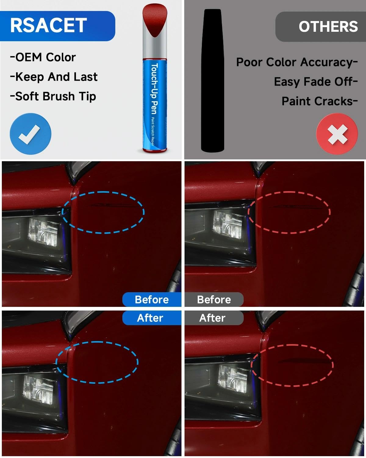 E4/F1/6D/M6886/M6470/6470C Vermillion Red Touch Up Paint Compatible with Ford Exact Match Touch Up Paint Car Scratch Repair