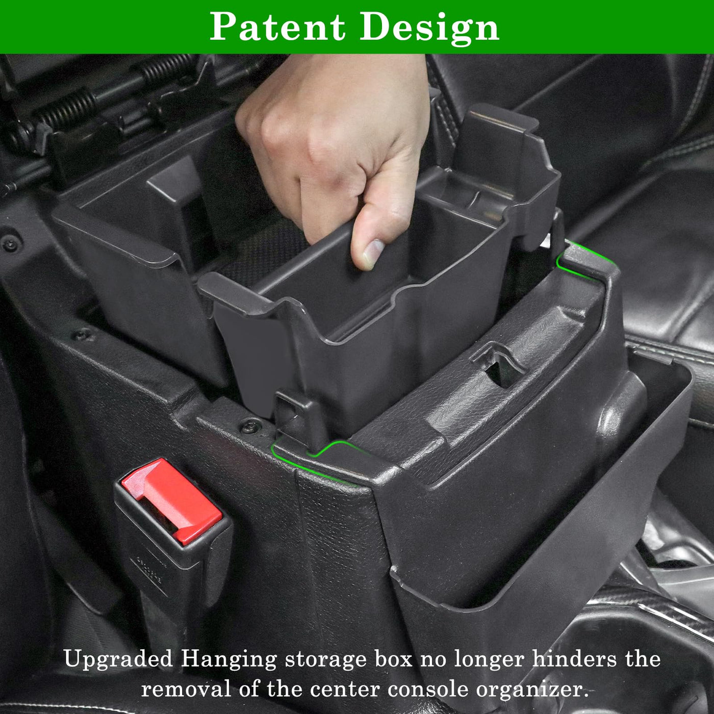 Eamplest's center console organizer help keep your truck clean.Compatibility:for Jeep Wrangler JL JLU 2018 2019 2020 2021 2022 2023 and 2020 2021 2022 2023 Gladiator JT 2/4 Door (Not fit JK/JKU)Upgrade Design:The hanging storage box for the center console is specifically designed for the 2018 2019 2020 2021 2022 2023 Wrangler JL JLU and 2020 2021 2022 2023 Gladiator JT center console. It will no longer hinder the removal of the center console organizer!Extra Space:Perfect for keeping essentials in this center console hanging box(phones, change, sunglasses, business cards). Perfectly compatible with Wrangler/Gladiator accessory!