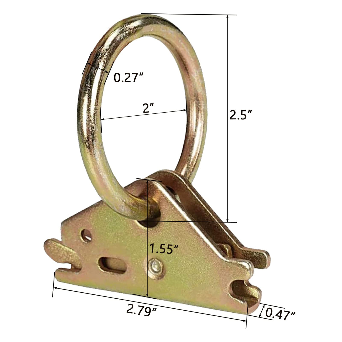 Q: How do I install the E-Track O Ring Tie-Down Anchors?A: Installation is easy: simply press the spring-loaded fitting to insert the anchor into the E-track rail slot, then release the spring lever to secure it in place. This allows for quick and effortless adjustments.