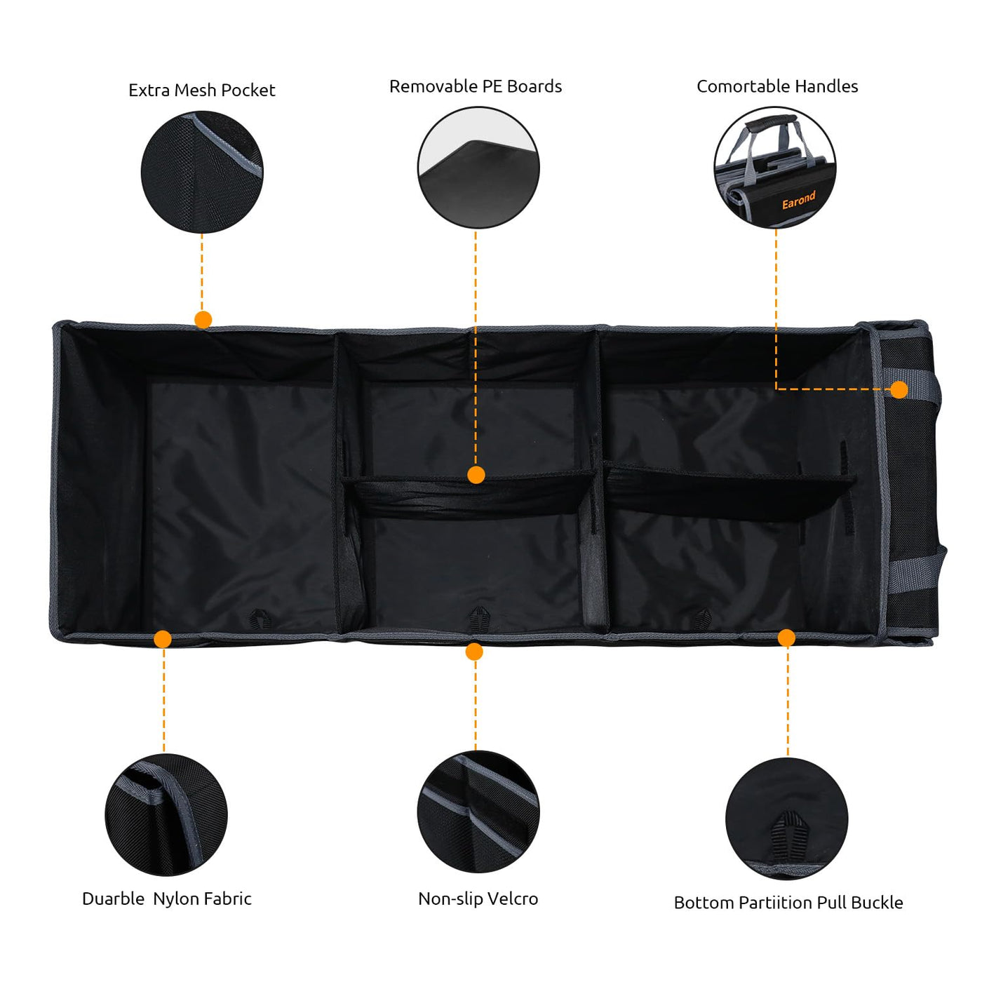 Earond Trunk Organizer for Car, Car Oragnizers and Storage with Foldable Lid,Adjustable Securing Straps,Collapsible Car Trunk Organizer for SUV,Truck,Van,Black & Grey