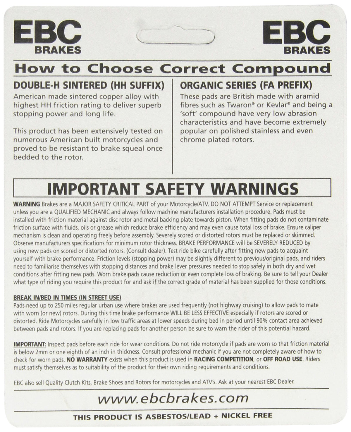 Q: What vehicles are compatible with the EBC Brakes FA400HH Disc Brake Pad Set?A: The EBC Brakes FA400HH Disc Brake Pad Set is designed to fit a wide range of modern ATVs and other vehicles that require high-performance brake pads. Always check your vehicle's specifications to ensure compatibility.