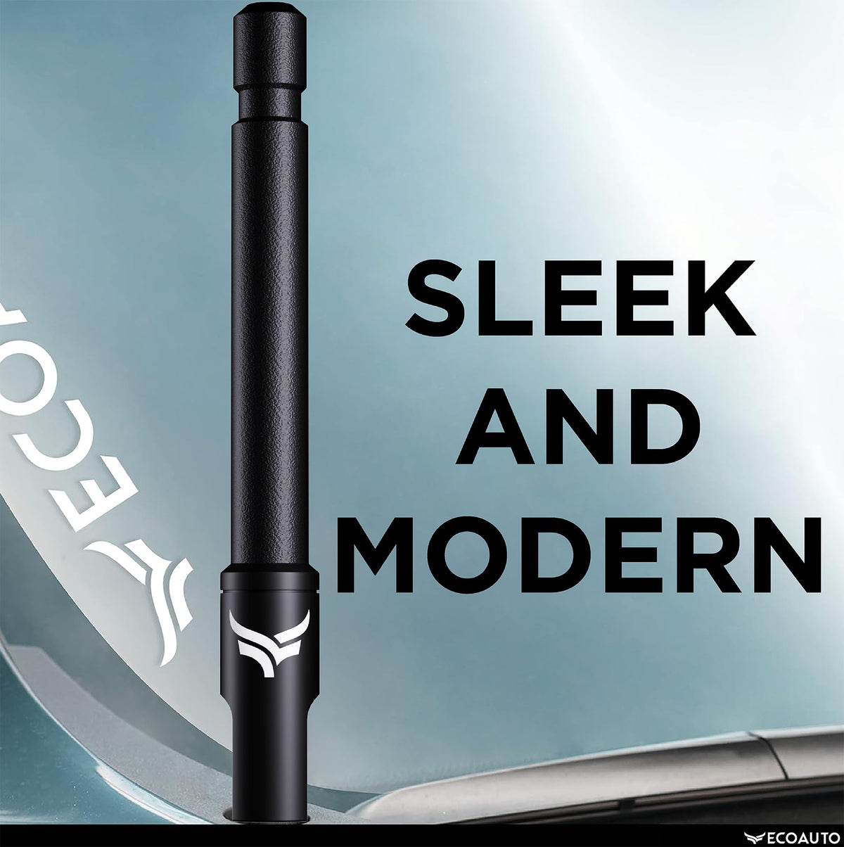 Q: Does the short 5-inch antenna affect radio reception?A: The 5-inch EcoAuto antenna may impact AM/FM radio reception compared to the original factory whip antenna due to its shorter length. It provides medium strength radio signal reception and is ideal for users who primarily use Bluetooth or auxiliary audio systems, as well as those who have GPS or satellite radio.