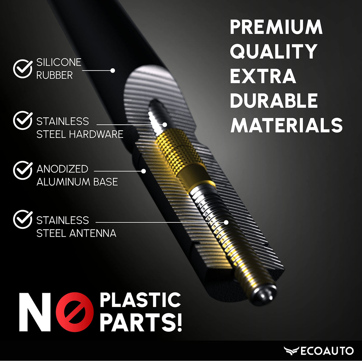 Q: What makes this antenna theft-resistant?A: The EcoAuto Truck Antenna features a built-in thread locking compound that prevents thieves from easily unscrewing and stealing the antenna. Additionally, the installation is not permanent, allowing you to remove it easily with tools if needed.