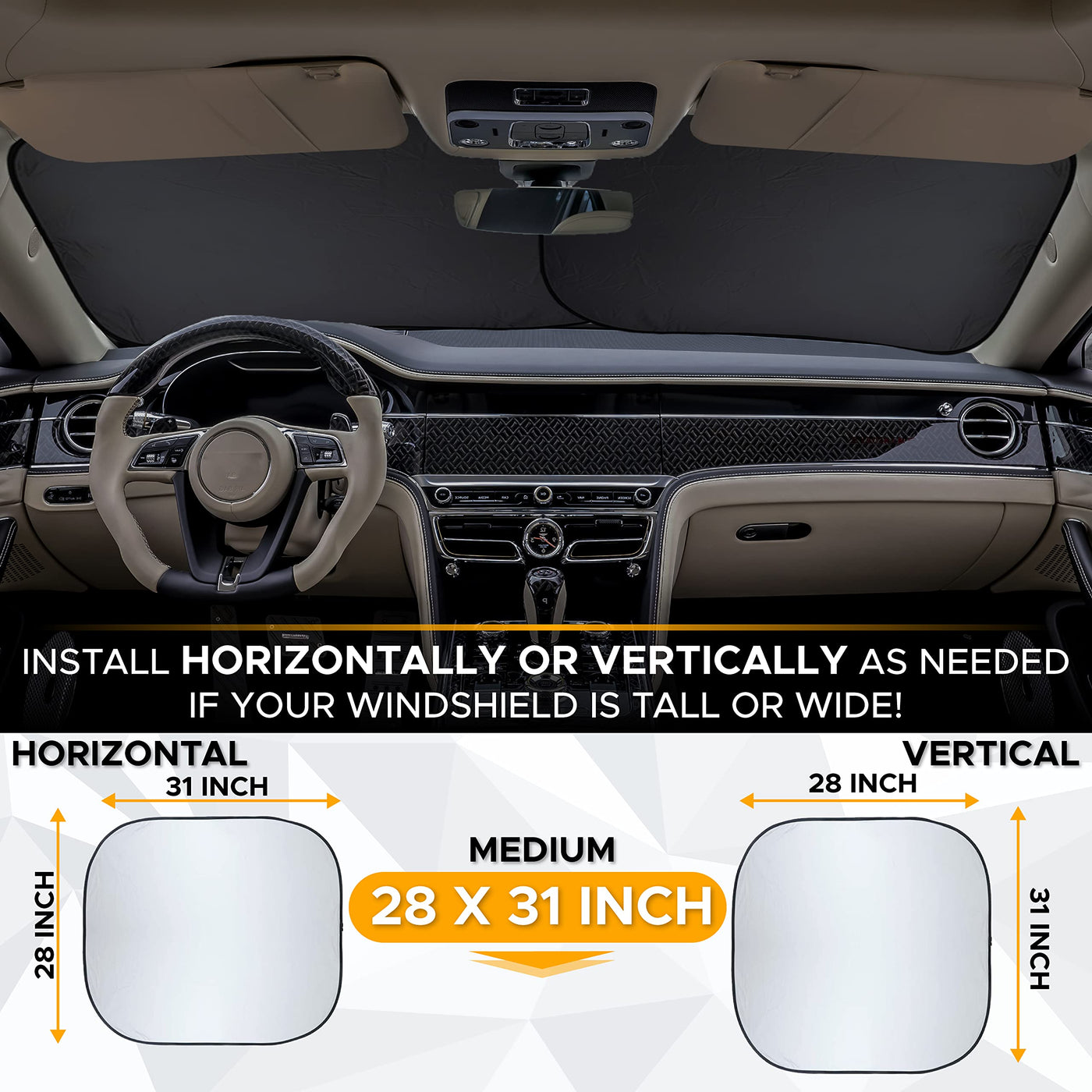 EcoNour 2-Piece Car Windshield Sun Shade, Sun Blocker for Car Windshield Reflects Heat and UV Rays, Foldable Automotive Interior Accessories for Sun Protection, Medium (28 in x 31 in)