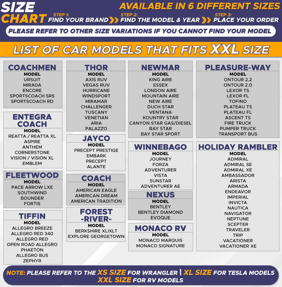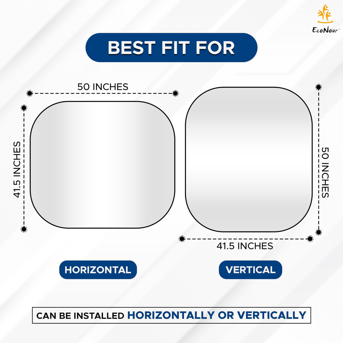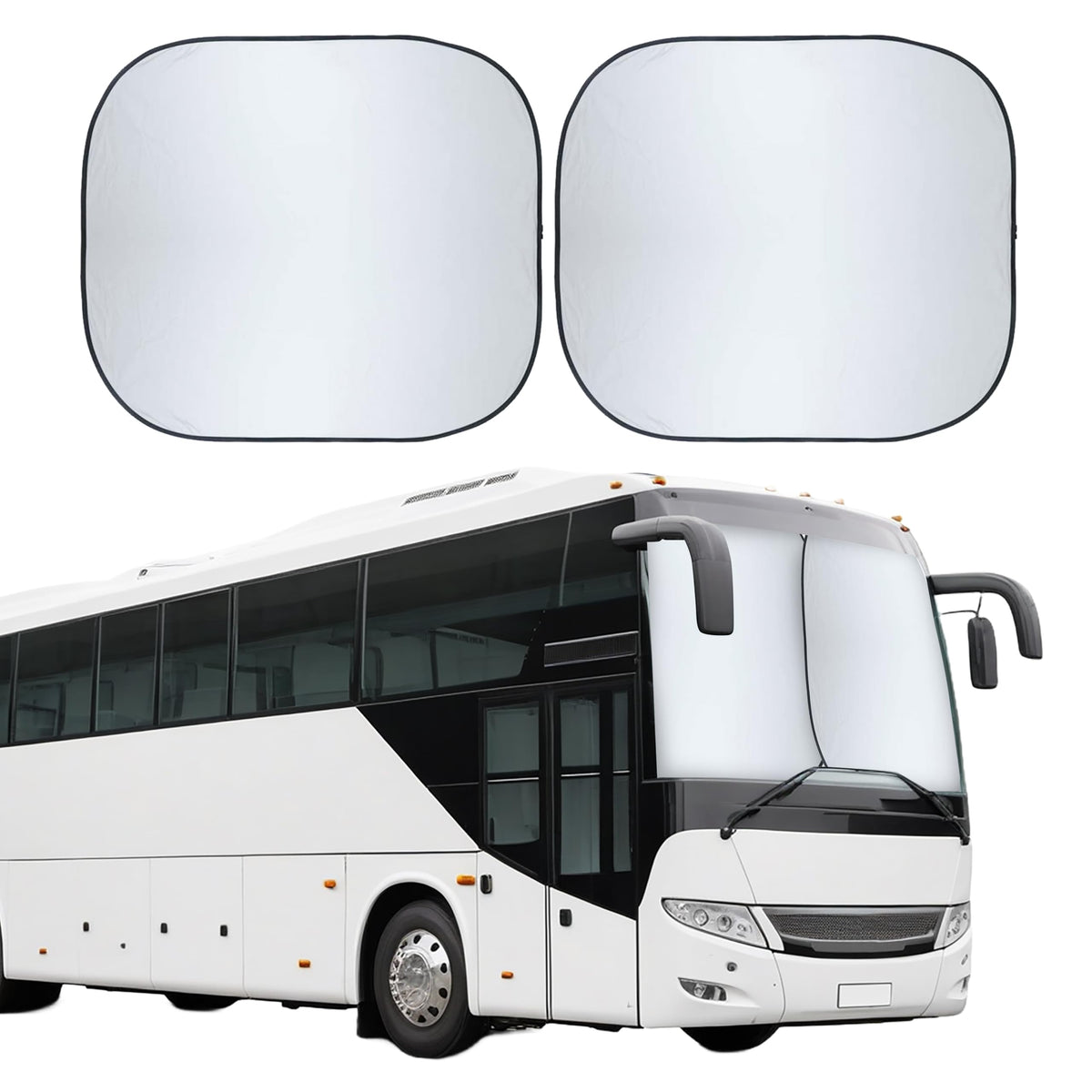 Q: What size RVs is the EcoNour sunshade suitable for?A: The EcoNour sunshade is designed as XXL, making it best fit for RVs, trucks, motorhomes, and large buses, with dimensions of each piece being 41.5 inches by 50 inches.