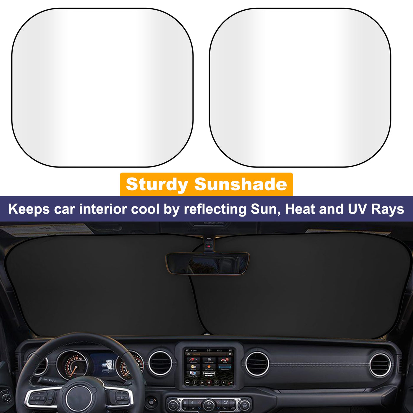 Econour 2-Piece Windshield Sun Shade For Jeep, Offers Complete Automotive Sun Protection, Foldable Jeep Windshield Shade Suits W
