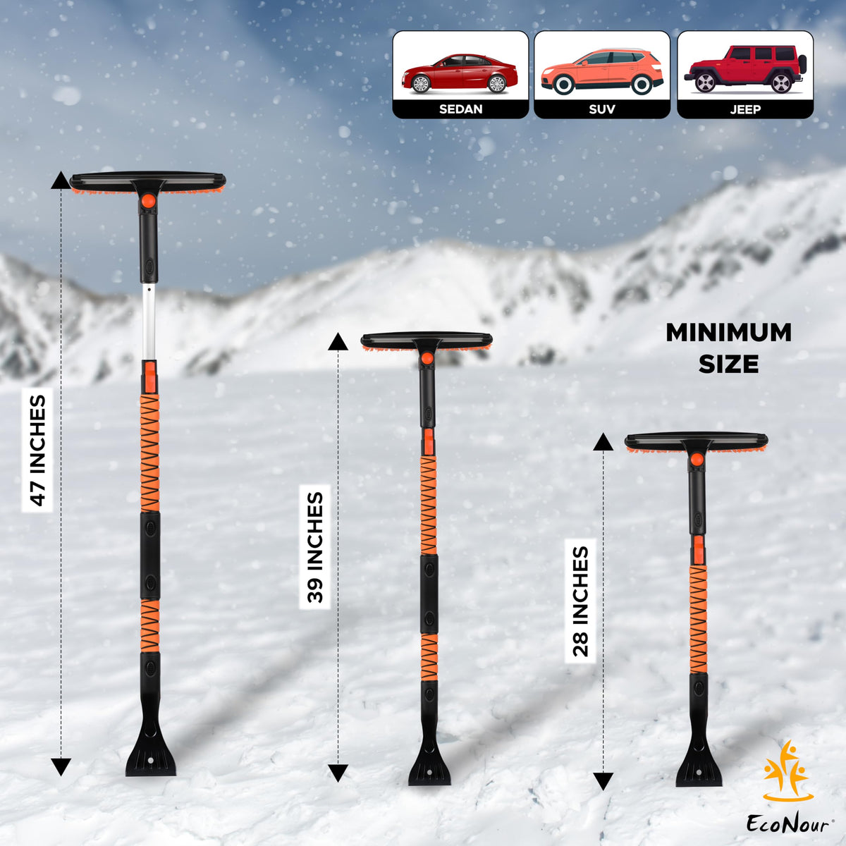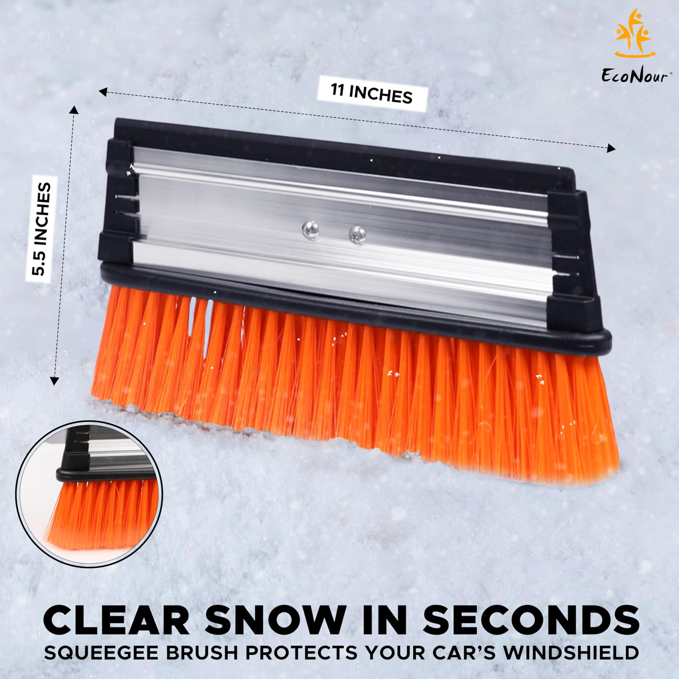 EcoNour 47 Extendable Snow Brush and Ice Scraper with 270 Pivoting Squeegee | Aluminum Handle | Telescopic Snow Brush for Car