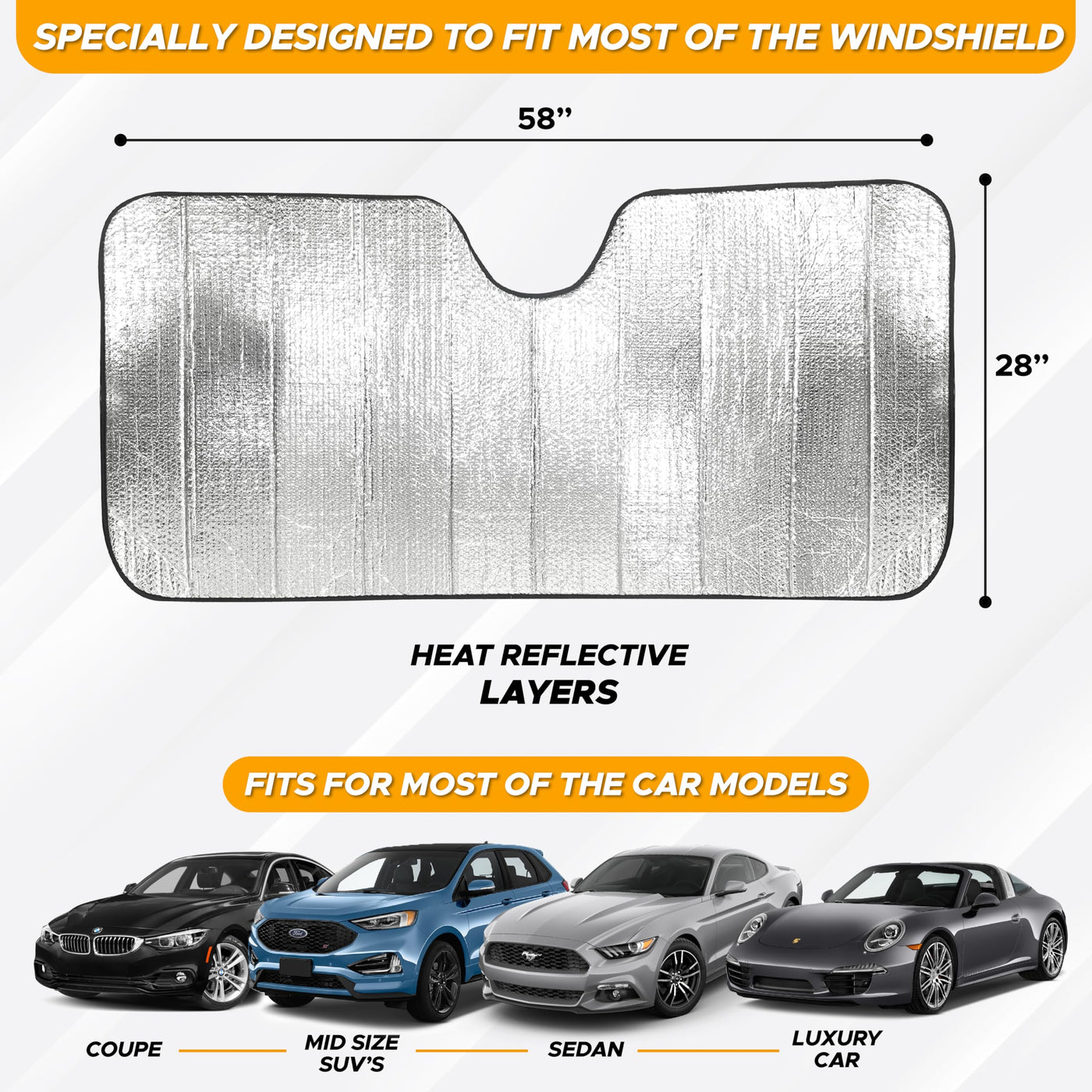 EcoNour Accordion Foldable Windshield Sun Shade | Premium Reflective Sun Visor for SUVs & Pickups Windshields | UV & Heat Reflec