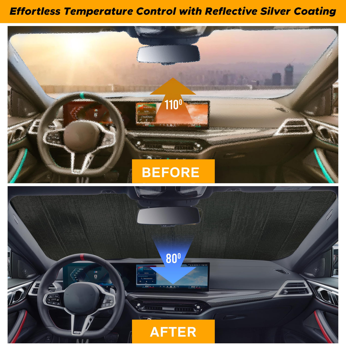 Complete Protection: EcoNour's Accordion Sunshade Large shields your vehicle from 98% of harmful sun rays, preserving your interior while reducing temperatures by up to 90