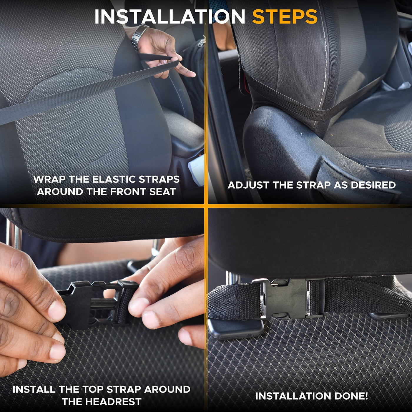 Perfect way to protect your car back seat from scratches, stains, spills, scuffmarks, dirt, mud and getting worn out. Ideal for those with kids and pets as well! Minimize damage from kids footwears and comes long lasting. Durable reinforced storage pockets will help you store and organize your things and small items. Pockets allow you to store Toys, Snacks, Glasses, Game consoles, Sippy cups, Books and Pens. Our premium kick mats back seat protector are made from High Quality Premium Oxford Fabric 600D Cloth. Measuring 19 x 25 inches, This child car seat kick mat will cover your backseat fully and easily. Dont worry allow your kids to kick your back of car seats. When it's gets dirty, you can toss it in the washing machine Hassle free cleaning, stress free interior car maintenance! Get yourself this well-designed car seat back protector and save your back of car seats.