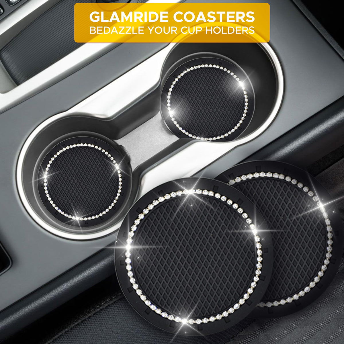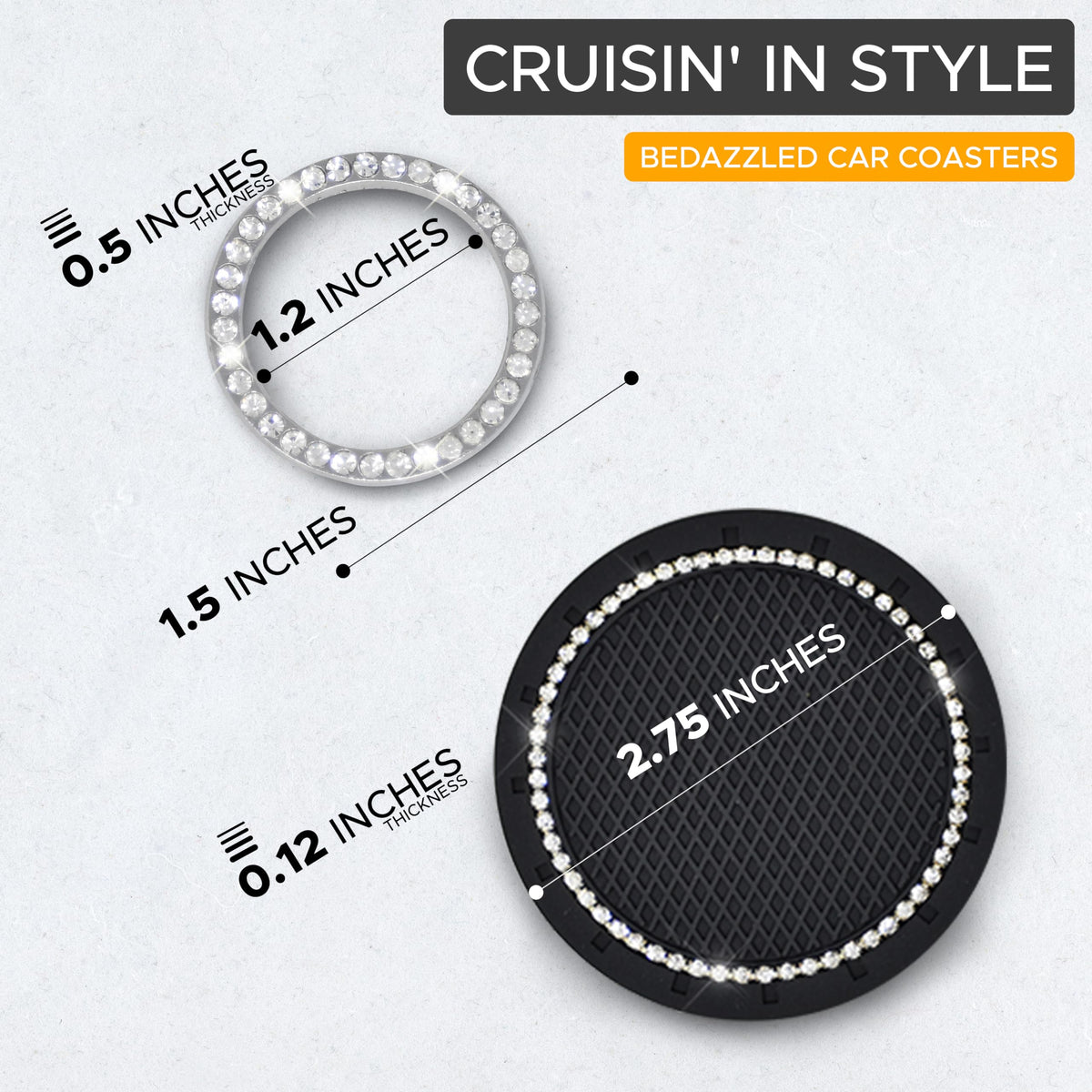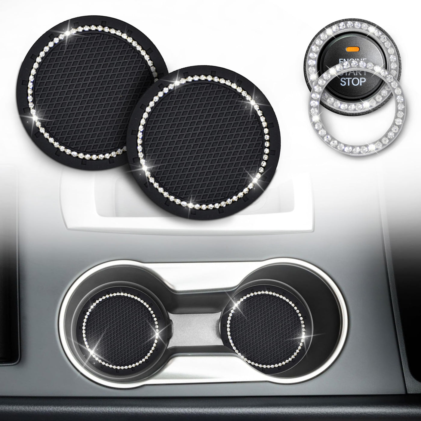 Econour Car Cup Coasters (2 Pack) | Car Push Start Button Bling (1 Pack) | Car Cup Holder Coaster | Crystal Rhinestone Car Interior Accessories | 2.75 Inch Universal Anti-Slip Coasters