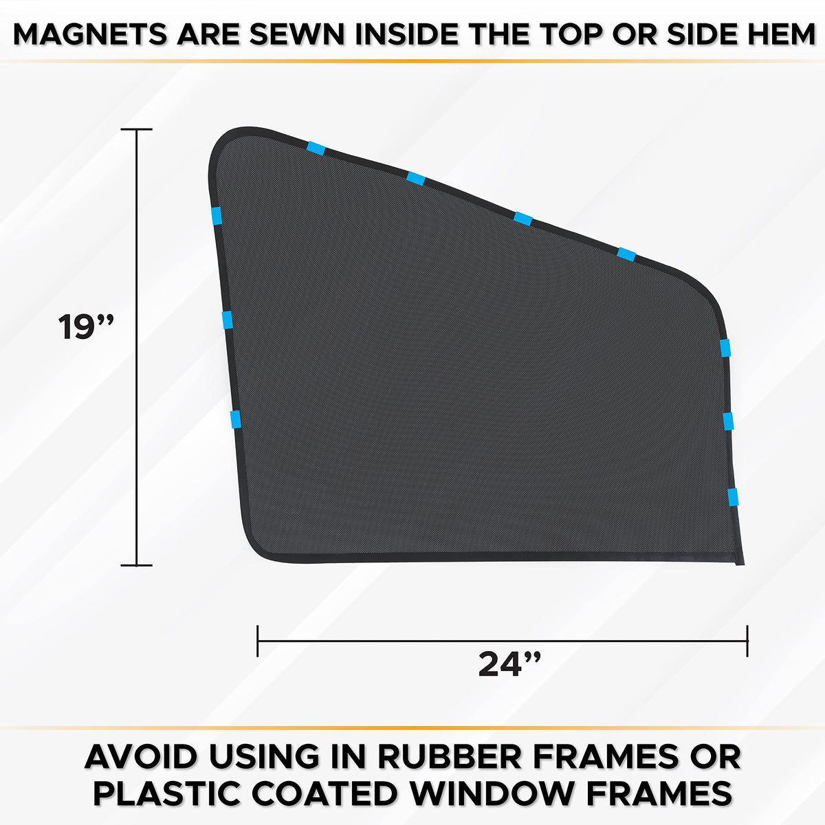 EcoNour Magnetic Side Window Sunshade (2 Pack) | Universal Car Window Shades for Front Windows with Privacy Blackout | Black, 24