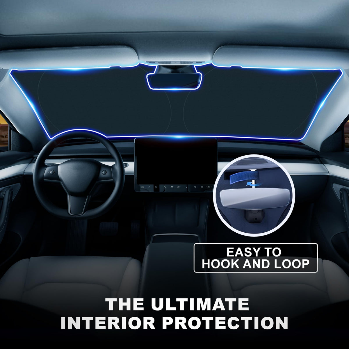 Econour Tesla Windshield Sun Shade For Model 3 And Y | Reflective 240T Material Blocks Sun & Heat | Offers Protection For Car In