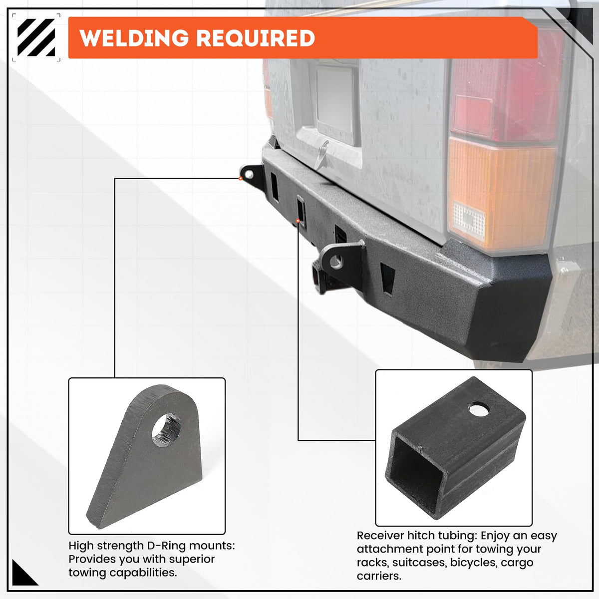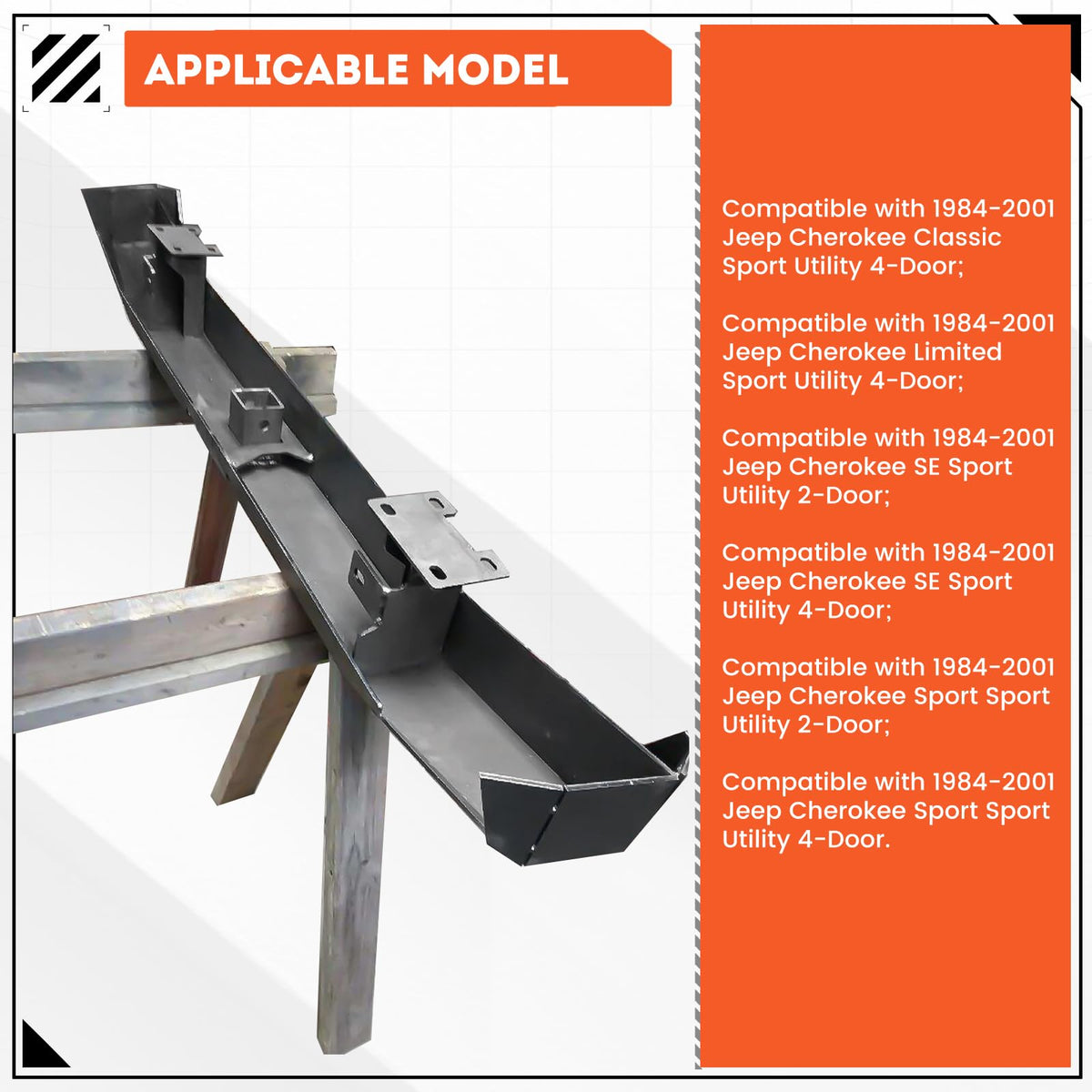 The Rear Bumper Kit Bare Metal Is Compatible With 1984-2001 Jeep Cherokee Classic Sport Utility 4-Door; Compatible With 1984-2001 Jeep Cherokee Limited Sport Utility 4-Door; Compatible With 1984-2001 Jeep Cherokee Se Sport Utility 2-Door; Compatible With 1984-2001 Jeep Cherokee Se Sport Utility 4-Door; Compatible With 1984-2001 Jeep Cherokee Sport Sport Utility 2-Door; Compatible With 1984-2001 Jeep Cherokee Sport Sport Utility 4-Door.Please Confirm The Fitment Of The Product Before Purchasing. | The Diy Kit Is Designed For Those Wanting To Build Their Bumper Themselves. Let Us Take The Design And Guess Work Out Of The Equation! Bend It, Weld It, Wheel It! | Cnc Cut From 3/16 '' Steel.Includes Receiver Hitch Tubing & D-Ring Mounts. | Protect The Vehicle From Collisions, As Well As The Front Bumper From Scratches On Driveways, Speed Bumps And Curbs. Aftermarket Replacement. | Note: Welding Required.