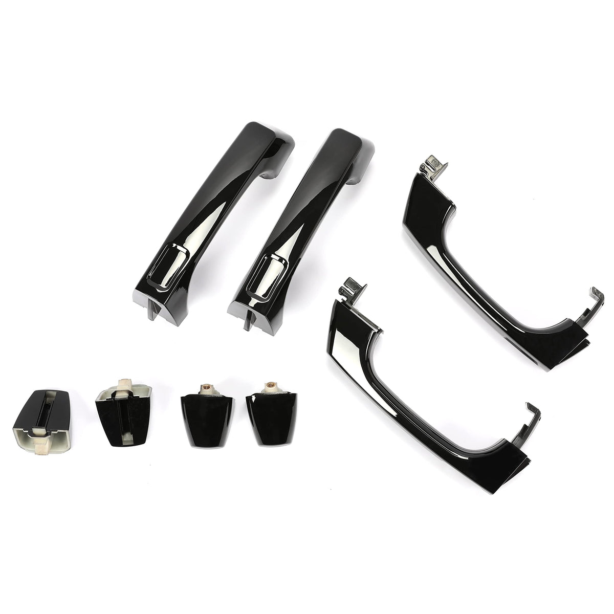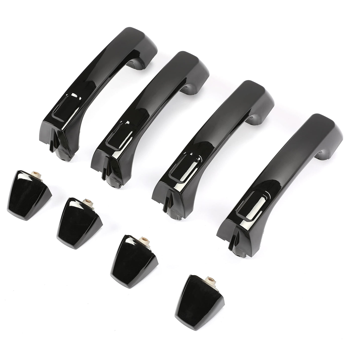 Q: How many door handles are included in the package?A: The package includes a set of 4 exterior door handles, allowing you to replace both front and rear handles on your vehicle.
