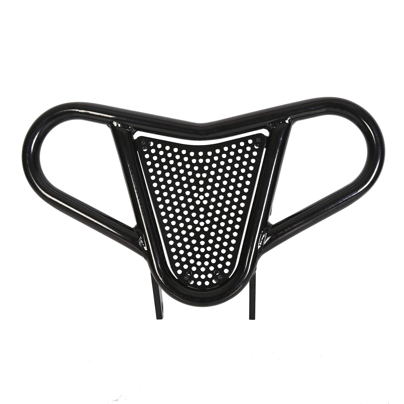 Q: What materials are used in the construction of the ECOTRIC Front Bumper?A: The ECOTRIC Front Bumper is made from 1" diameter aluminum tubing, which provides durability and strength. The mudscreen is also constructed from aluminum and is removable for easy cleaning.
