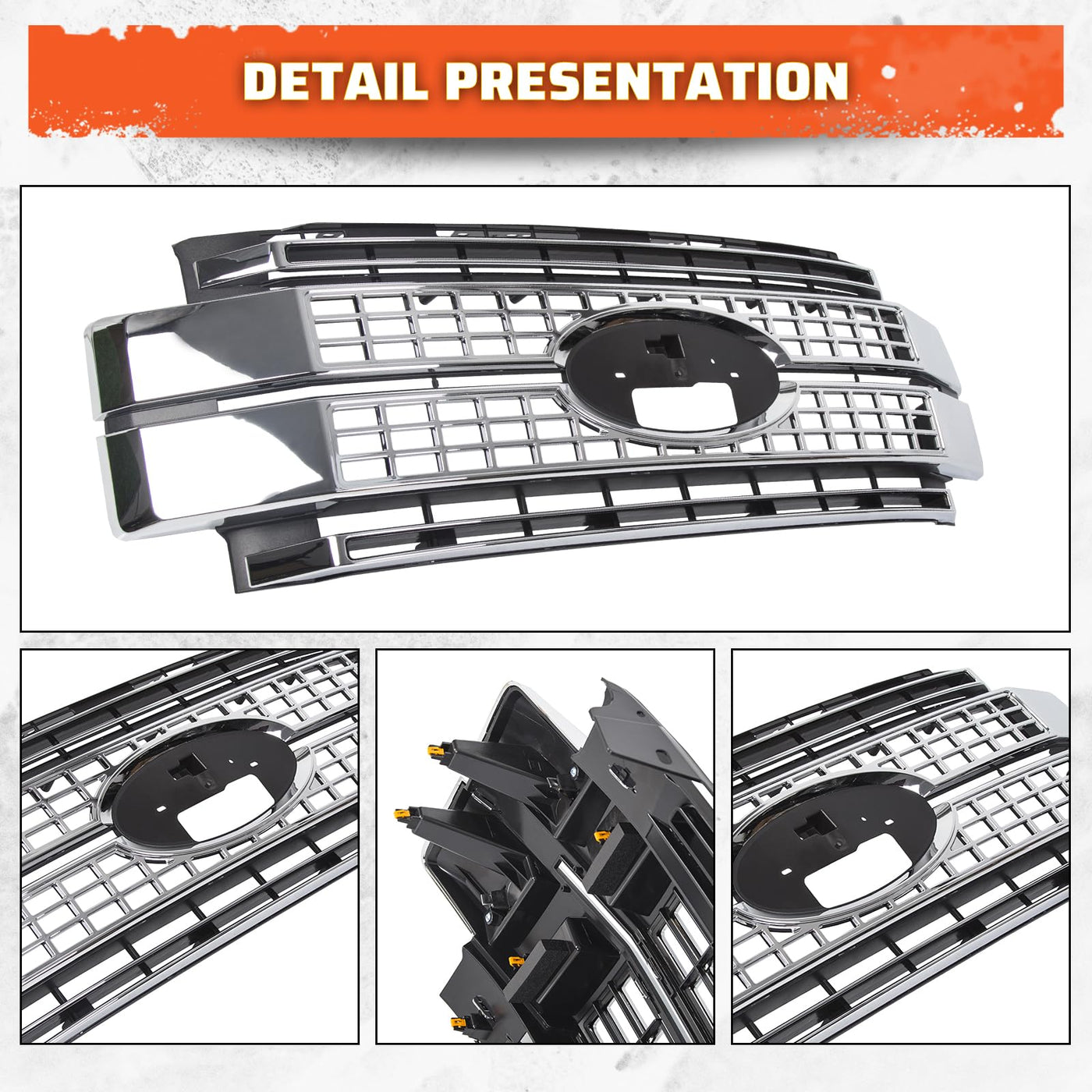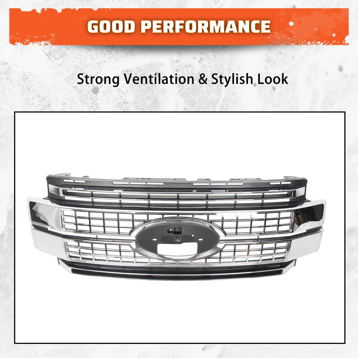 Fitment: This Front Grille Is Compatible With 2017 2018 2019 Ford F Series Super Duty F250, F350, F450, F550.Function: New Item. Freshen Up Your Exterior With Beautiful Grille For Your Super Duty. The Satin Aluminum Surface Finish Of This Grill Will Upgrade Your Exterior Appearance. Clean And Cool Style.Installion: Easy To Install,Direct Replacement. This New Replacement Grill Enables Air Flow Into Your Vehicle To Cool Down Your Radiator And Engine, While Making It Look As Good As New. Designed To Meet Or Exceed Standard Specificationsfeature: Constructed With Heavy Duty Material For The Great Grille In Strength And Durability. Ecotric Grille Is Durable, Non-Deformation, Aging-Resistant And Has High Strength. Good Performance In Any Weather Conditions, Cold, Heat, Vibration And Impact.Note: No Center Emblem Is Included. Re-Use Original Emblem.