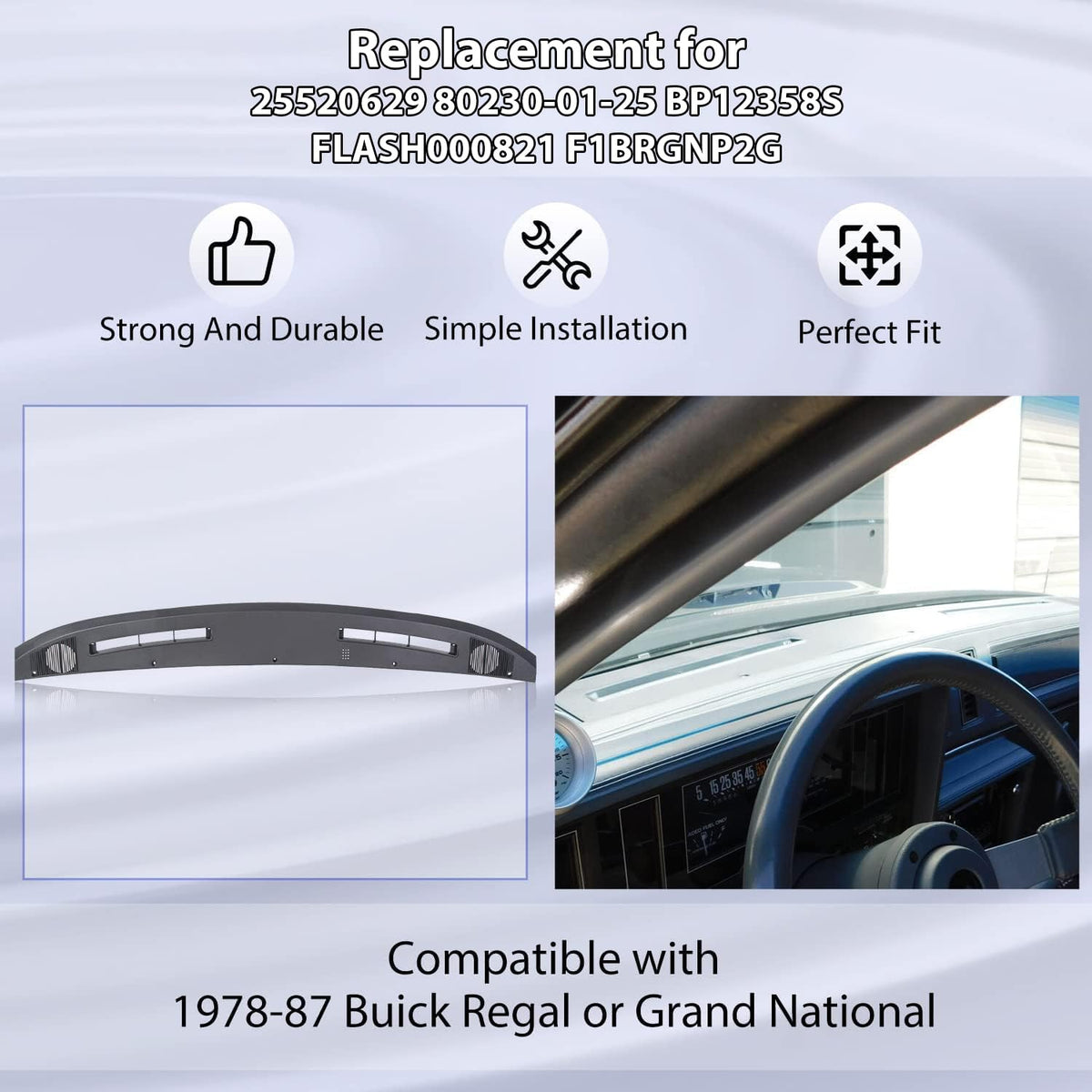 ECOTRIC Upper Dash Panel Compatible with Buick Regal & Grand National 1978-1987 Replacement for 25520629 80230-01-25 BP12358S FL