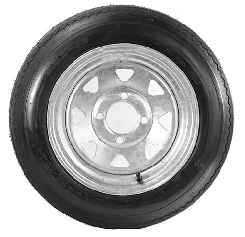 Q: What type of rim does the eCustomrim Trailer Tire come with?A: The eCustomrim Trailer Tire is mounted on a 12 inch x 4 inch galvanized spoke rim with a 4 lug configuration, ensuring durability and compatibility with various trailer setups.