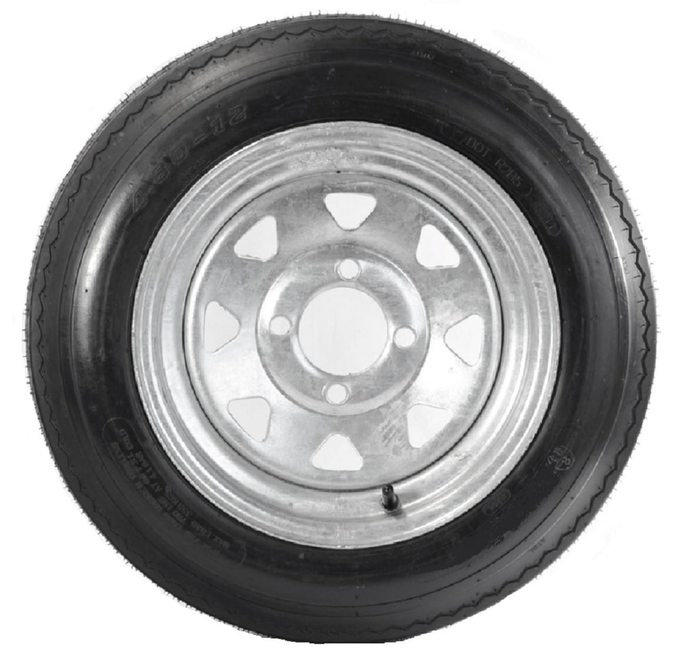 eCustomrim Trailer Tire On Rim 4.80-12 480-12 4.80X12 Load Range B 4 Lug Wheel Galvanized Spoke - 2 Year Warranty w/Free Roadside