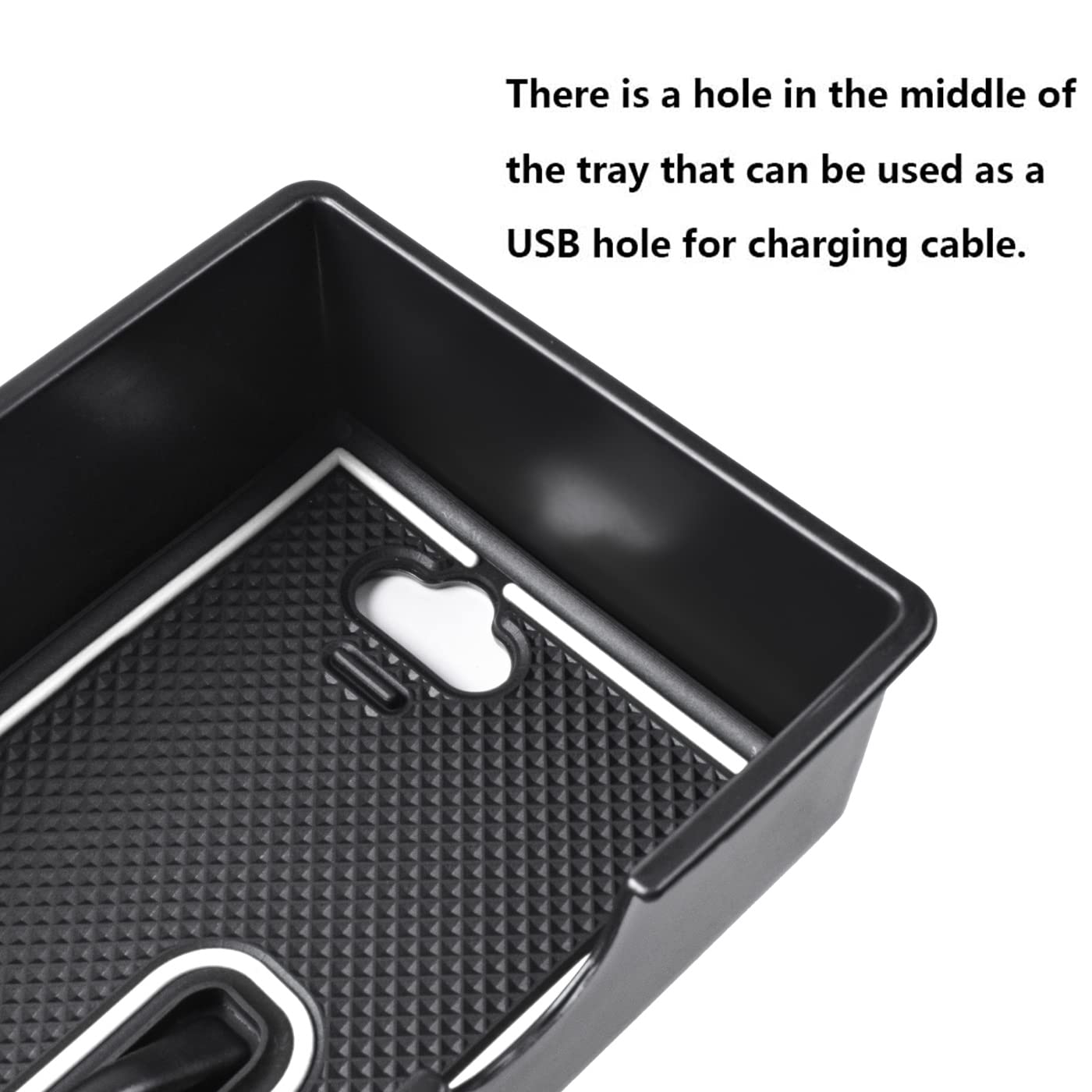 Q: What material is the center console organizer made of?A: The EDBETOS Center Console Organizer Tray is made of durable 'Rub' material, designed to withstand daily use and provide long-lasting organization for your console.