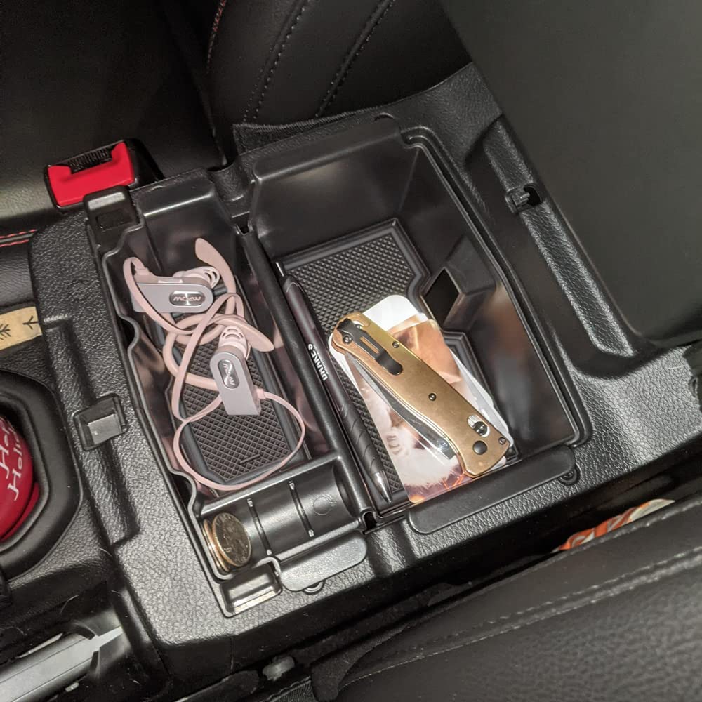For Wrangler JL, JLU, and Gladiator JT owners seeking to enhance their vehicle's organization and functionality, the EDBETOS Armrest Console Organizer is an essential accessory. It combines style, durability, and practicality, ensuring your interior remains tidy and functional. Experience the convenience of a well-organized armrest console and make every drive more enjoyable.