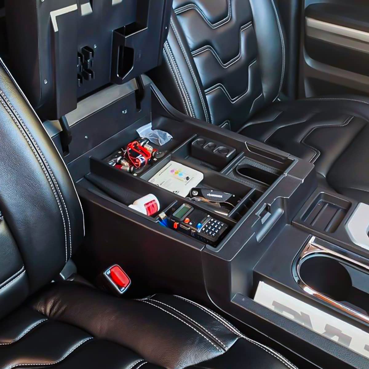 This center console organizer Fits for 2014-2019 2020 2021 Tundra ,Including SR,SR5,LIMITED,Platinum,1794 Edition and TRD Pro. Tundra Accessories. The precise fit of the design transforms the organizer into several high boxes with storage compartments. Makes your Armrest console organized and looks much tidy. Easy to remove and install. It just takes seconds to install! No tools needed Better classification of items, easier to find. Organizers can store mobile phones, cards, cigarettes, coins, etc. The original armrest box is so deep and everything just got lost at the bottom, adding this center console organizer to your truck, makes everything organized and settle your items easier. FIRST The bottom of this armrest box is so deep that it is difficult to get the contents inside. Items stored inside will be messy. Lost a lot of available space. SECOND After the organizer is installed, the upper and bottom parts are managed separately, which increases a lot of available space and is clean and tidy. THIRD Easily store and get your items. Provides quick access to things without digging in the hole. You can clean the console easily and quickly, if you are bored with the noise of collision of stuff and console organizer, the rubber mats must be your necessity. EMPTY OR MESS Because your armrest box is not using an organizer, it is empty when no items are placed. When you put the items in, it will be very mess. TIDY When you install this organizer, your items will be neatly placed on the top. Rubber mats prevent abnormal noise. NO MORE MESS This tray is huge and has many different storage compartments for just about any loose little items that you may have in your truck such as pens, coins or tokens for tolls, keys, cell phone, etc....