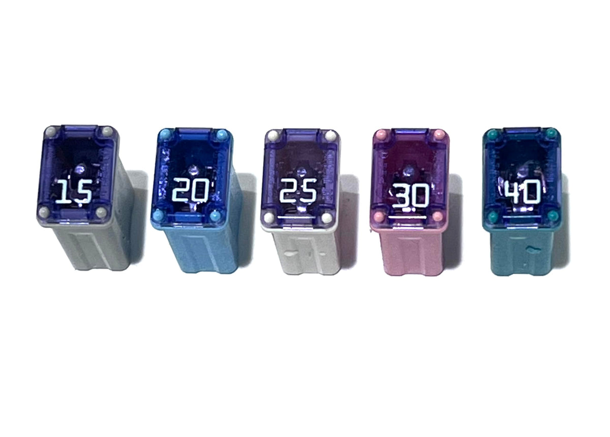 ? Key Features & Benefits Complete Assortment: Includes 25 Micro Cartridge Fuses - 5 each of 15A, 20A, 25A, 30A, and 40A - covering a wide range of automotive applications. MCASE Type Fuse: Precision-engineered Micro Cartridge Fuse (FMM) designed to meet modern automotive requirements with a compact and reliable form factor. Color-Coded for Accuracy: Industry-standard fuse body colors enable quick identification of amp ratings for faster, mistake-free replacement. OEM Fitment & Dimensions: Compact size (0.6'' H x 0.3'' W x 0.43'' L) matches OE specs to ensure proper fit and reliable circuit protection. Broad Compatibility: Compatible with many vehicles from Ford, GM, Subaru, Jeep, Dodge RAM, Mazda, Hyundai, and Kia. OE Cross Reference: Replaces Ford DG9Z-14526-T / -BA