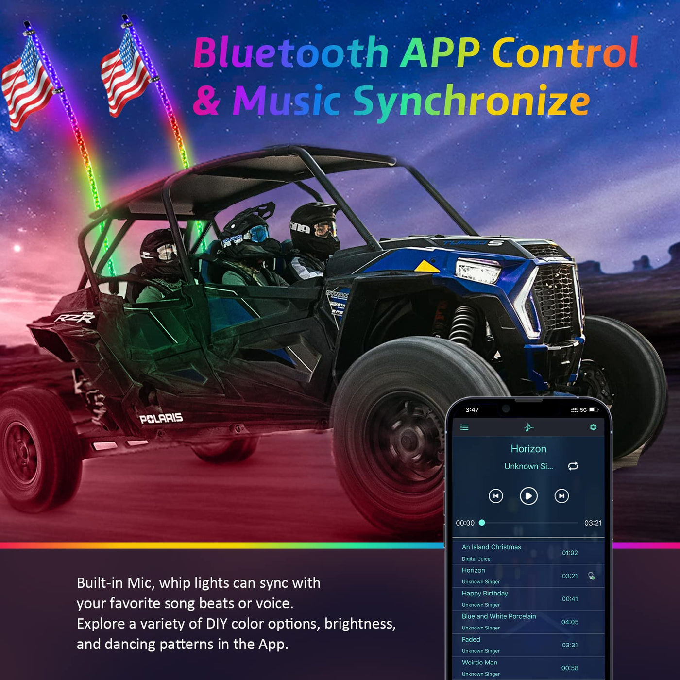 Ehaho 1 Pack 3Ft Whip Lights,Led Whip Light With App & Remote Control, Spiral Rgb Chasing Lighted Whips With Rocker Switch, Musi