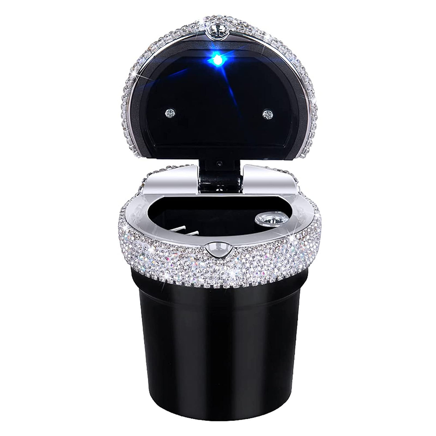 Eing Car Ashtray Portable Bling Cigarette Smokeless Cylinder Cup Holder With Blue Led Light Indicator,Car Accessories For Women,