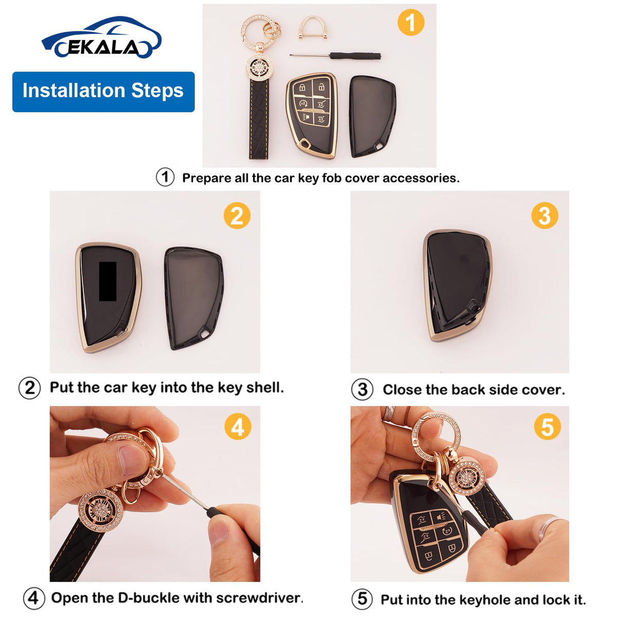 EKALA for Chevy Key Fob Cover with Leather Keychain 6 Buttons Soft TPU Car Keys Shells Compatible with 2021 2022 Chevy Suburban