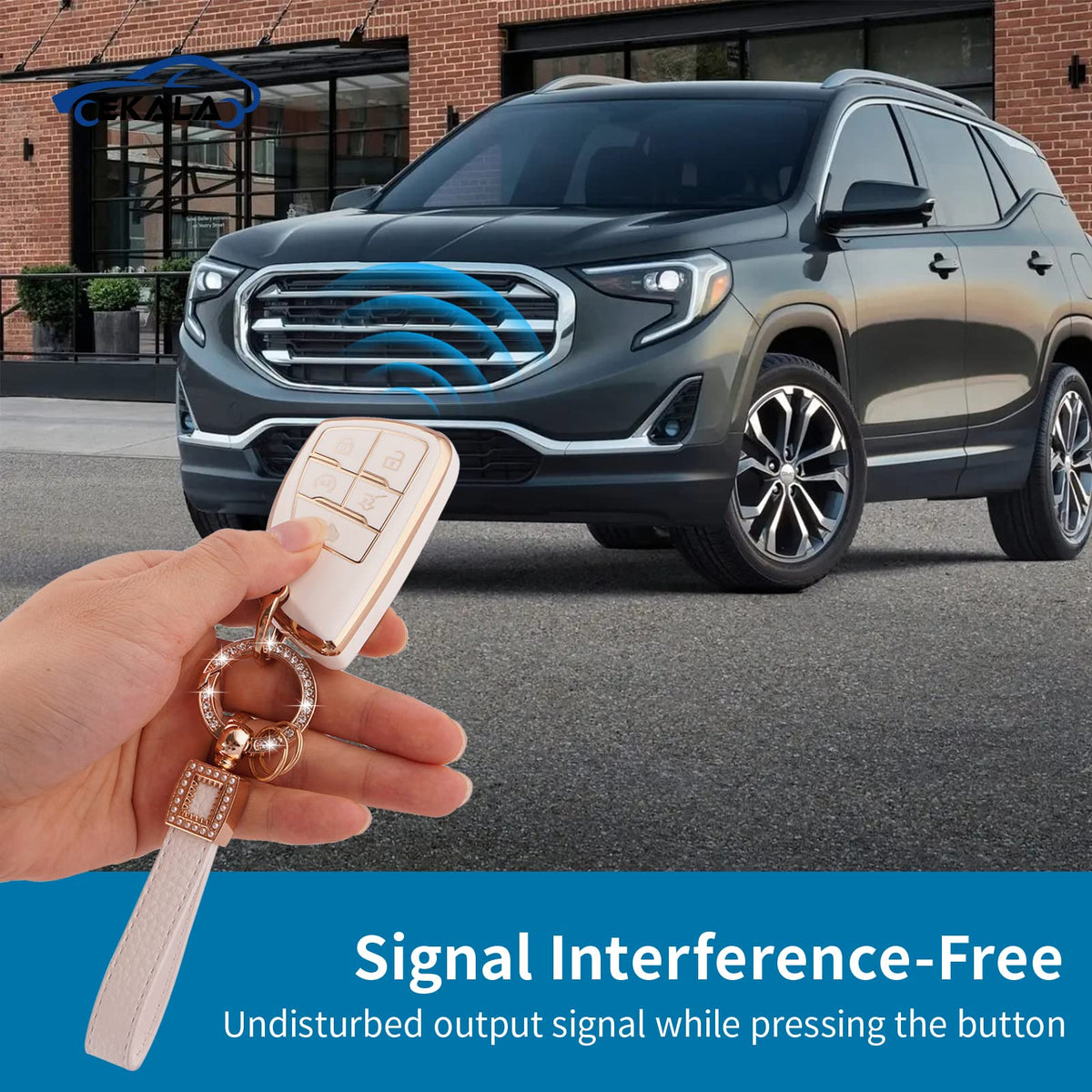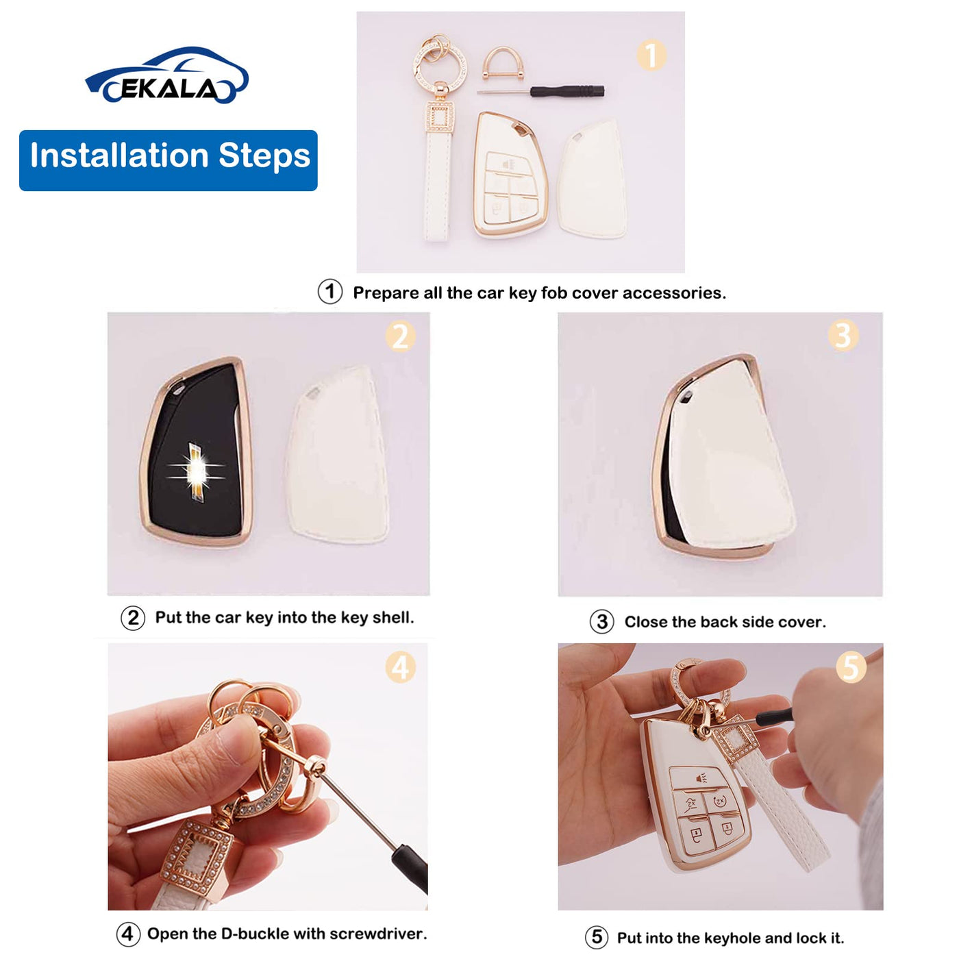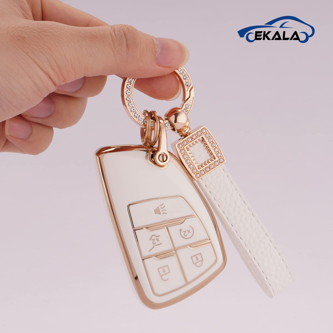 EKALA for GMC Key Fob Cover with Leather Key Fob Keychain, 5 Buttons Soft TPU Key Shell Case Compatible with 2021 2022 2023 GMC