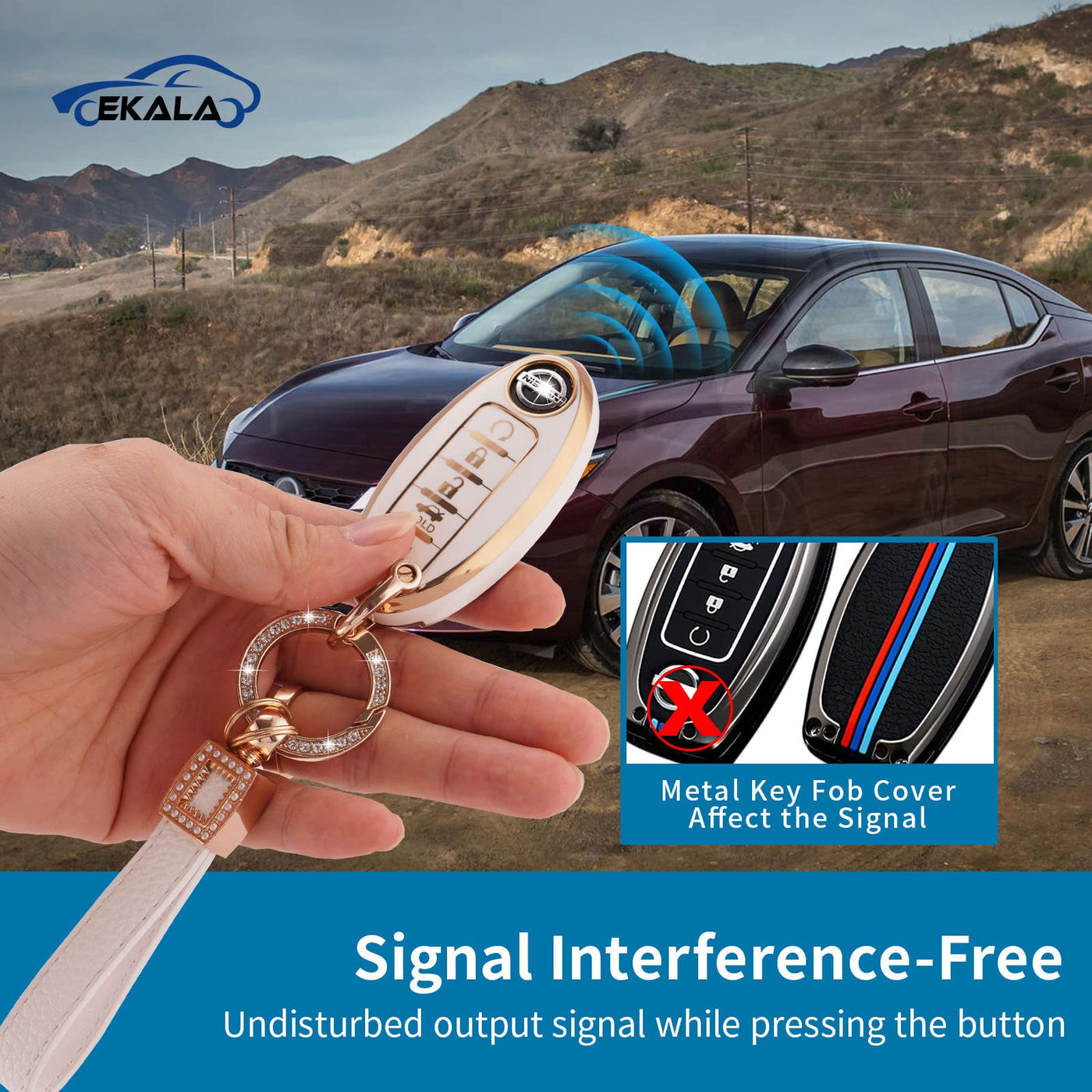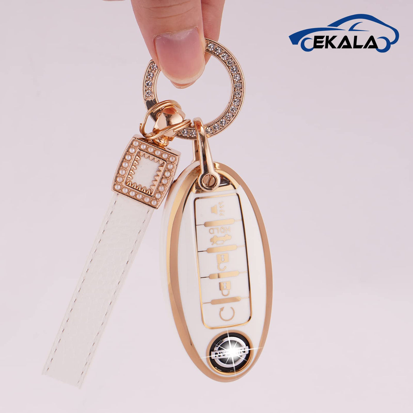 EKALA for Nissan Key Fob Cover 5 Buttons Soft TPU Full Covers Protection Key Case Shell with Leather Keychains Fit for Nissan Al