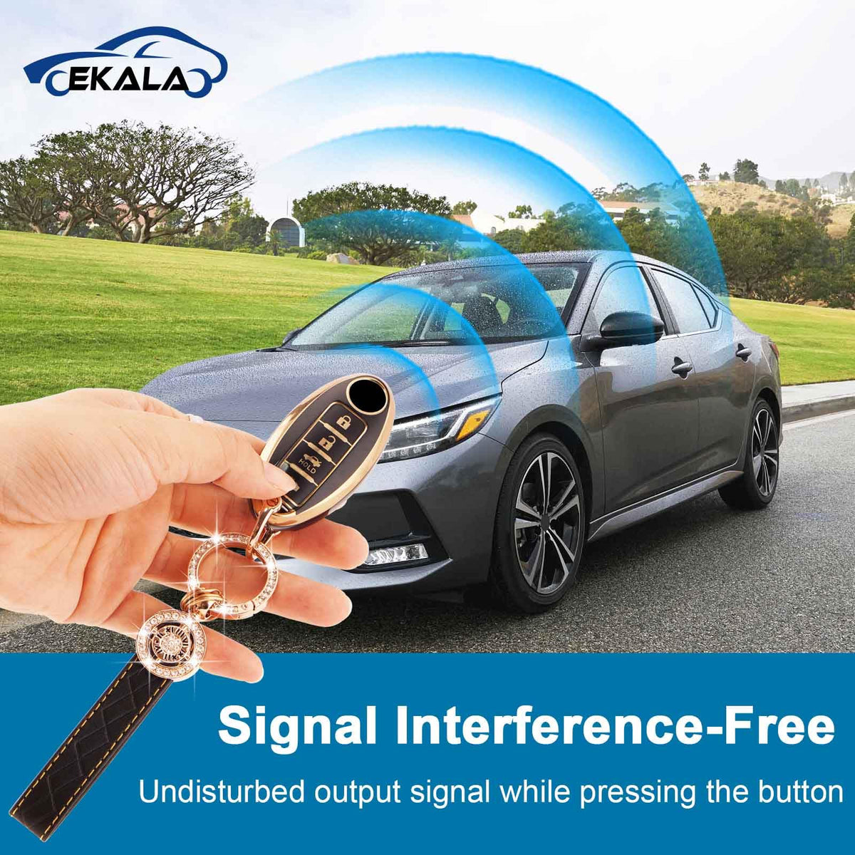 EKALA for Nissan Key Fob Cover Soft TPU Key Shells with Leather Keychain Lanyard Fit for Nissan Altima Armada Maxima Sentra Rogu