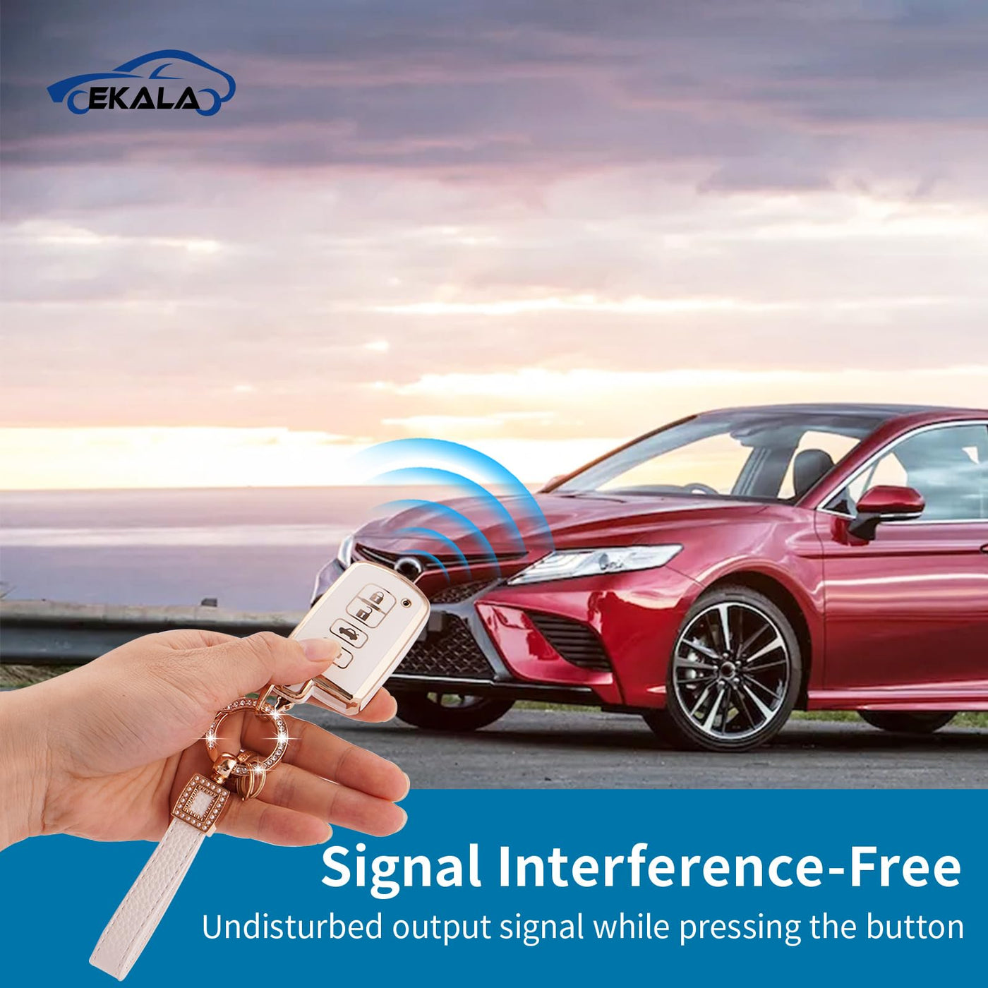 EKALA for Toyota Key Fob Cover with Leather Keychain Lanyard 4 Buttons Soft TPU Key Case Shell Fit for Toyota Camry Avalon Corol